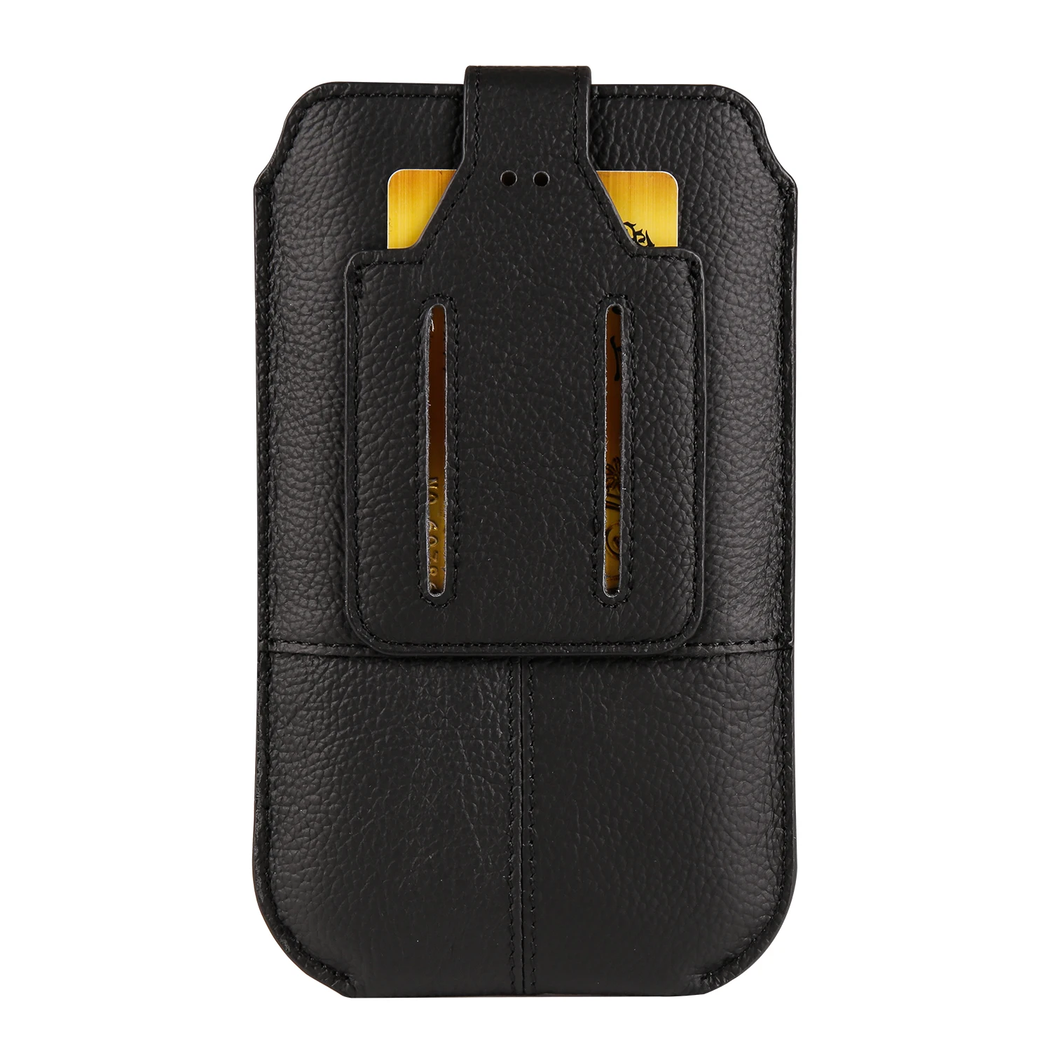 Luxury Genuine Leather Mobile Phone Pouch, Back Card Slot Belt Clip Case Men Waist Bag