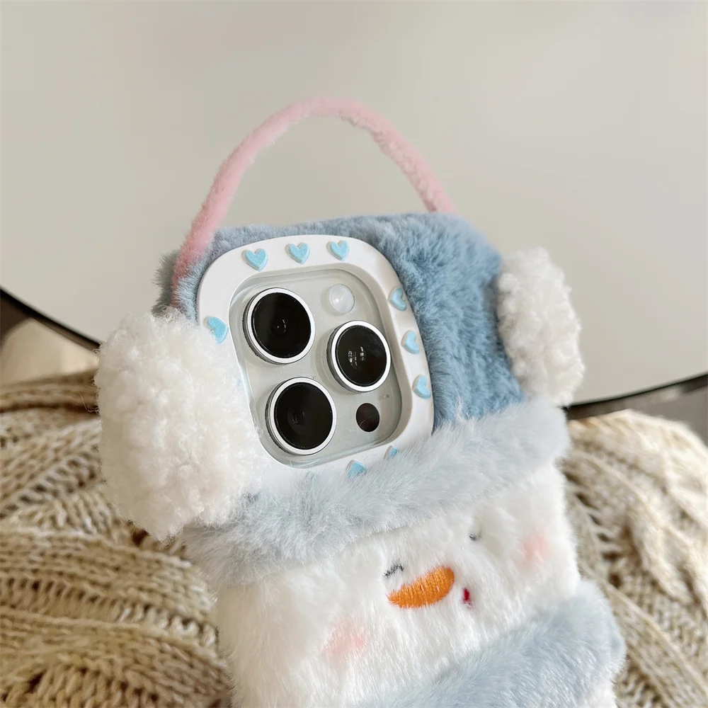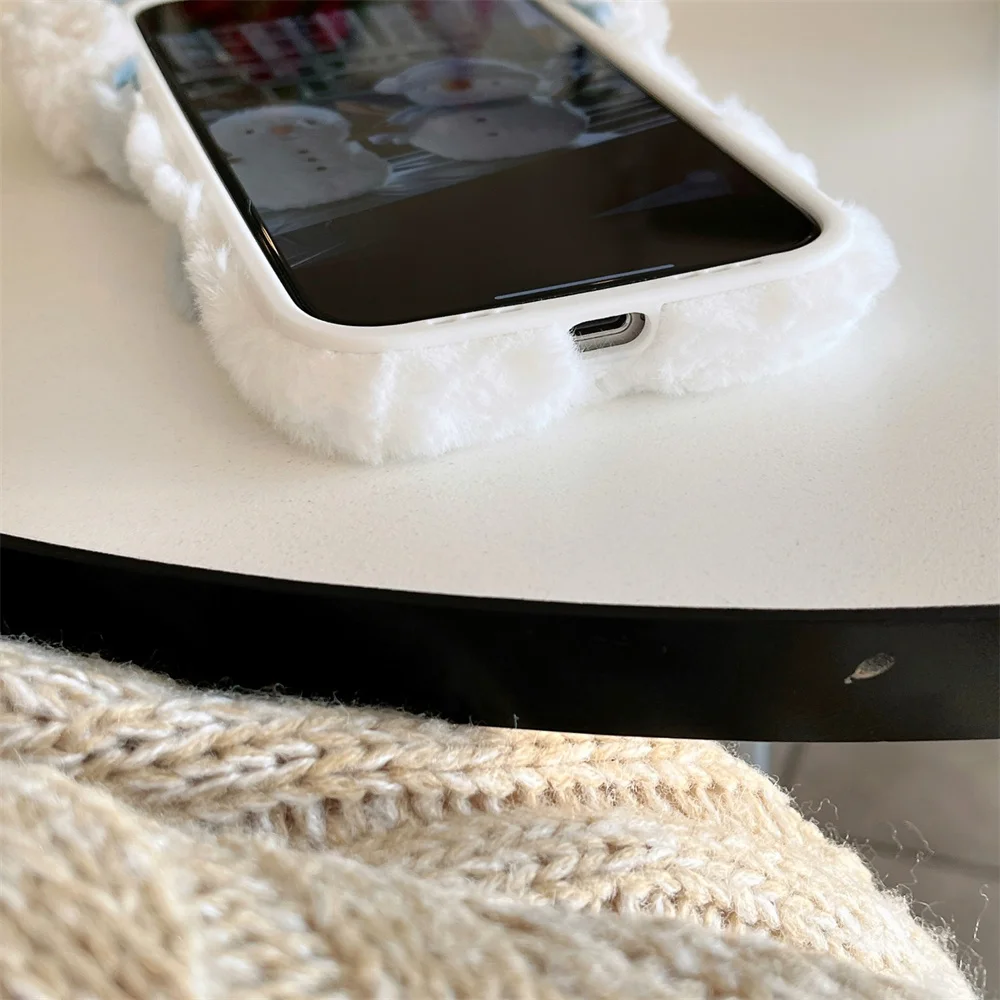 Cute Cartoon Furry Snowman Case for iPhone 16 15 14 Pro Max 12 13 11 Plush Winter Warm Soft Shockproof Cover for iPhone 16Pro