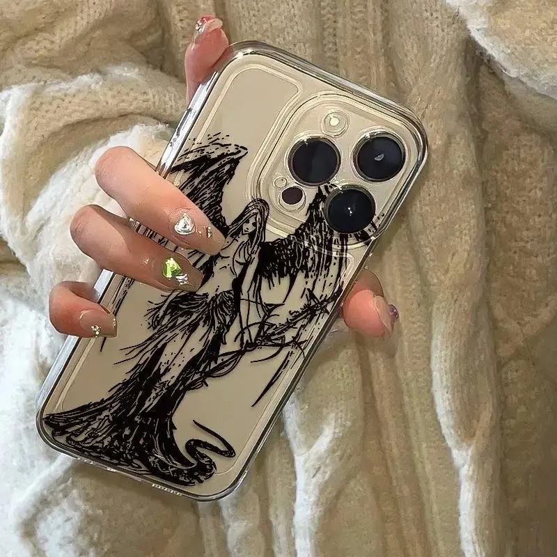 Color: Beige, Material: Wood - luxury bloodsacrifice Black Angel Death demon Phone Case For iPhone 15 14 13 12 11 Mini Pro Max XR XSMax 7 8 Plus SE Clear Cover