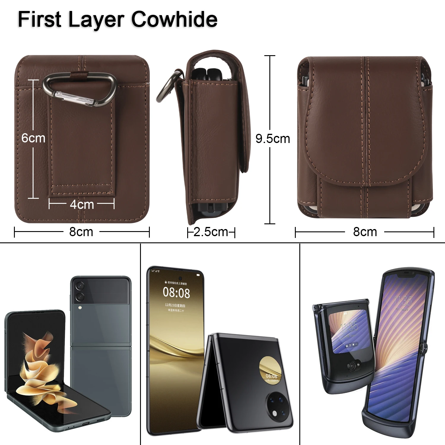 Genuine Leather Waist Belt Case Pouch For Samsung Galaxy Z Flip 5/4/3, Moto Razr,Huawei P50 Pocket, Vivo X Flip Smartphone
