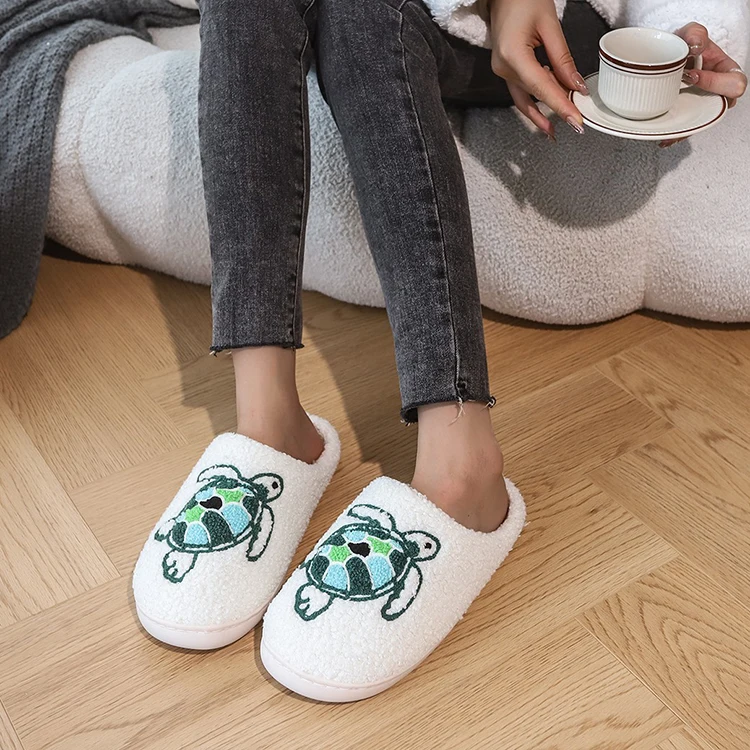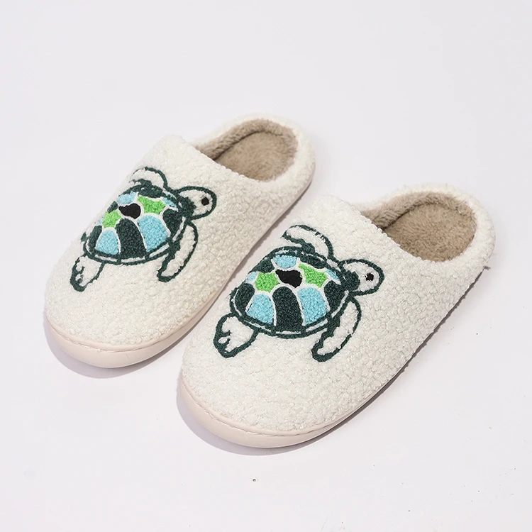 Color: Beige, Shoe Size: 3 - Casual Fluffy Slippers Women House Flat Cute Cartoon Designer Platform Winter Shoes Girls Home Fashion Popular Footwear Big Size