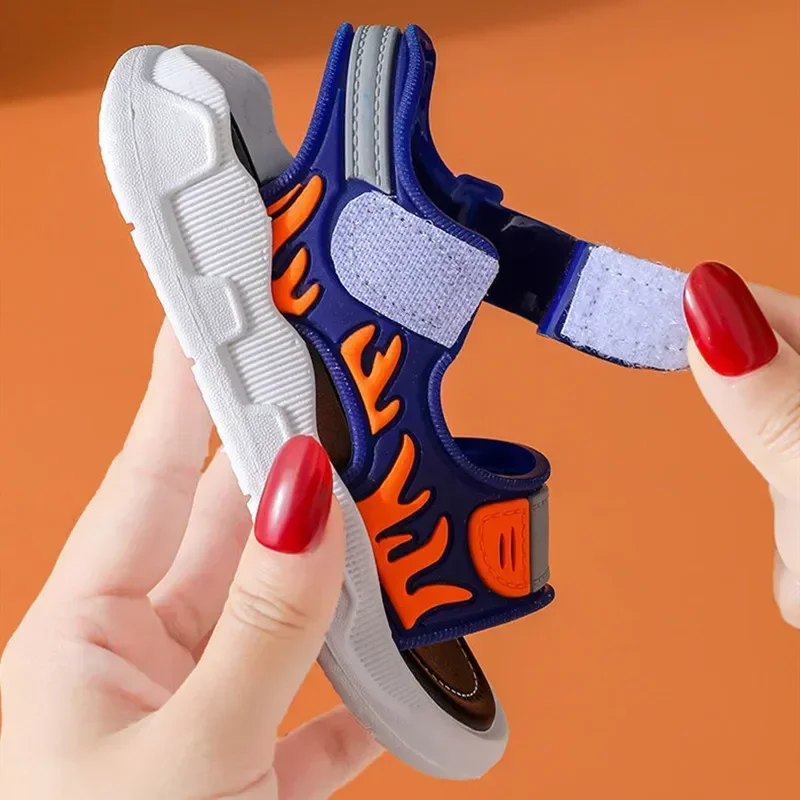 Color: Beige, Shoe Size: 31 - Baby Sandals Flame Pattern Boy Sandals Soft Sole Anti-slip Boys Girls Children Shoes
