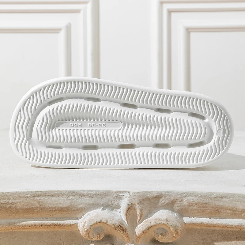 Color: Beige, Shoe Size: 33.5 - Thick Platform Cloud Slippers Women Double Buckle Soft Sole Pillow Slides Sandals Woman Summer Beach Non-Slip Flip Flops