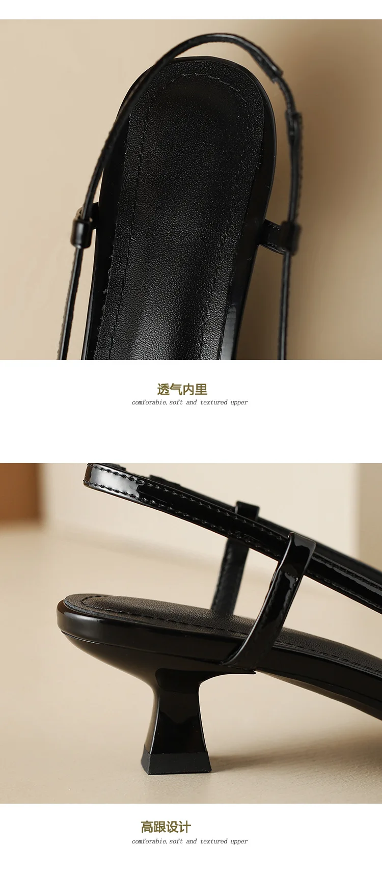 Color: Beige, Shoe Size: 35 - 2024 New Summer Women's Dress Shoes Patent Leather Slip on Pointed Toe Sandals Buckle Slingbacks Mid Heels Pumps Sandalias Mujer