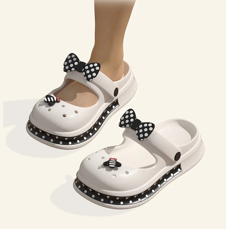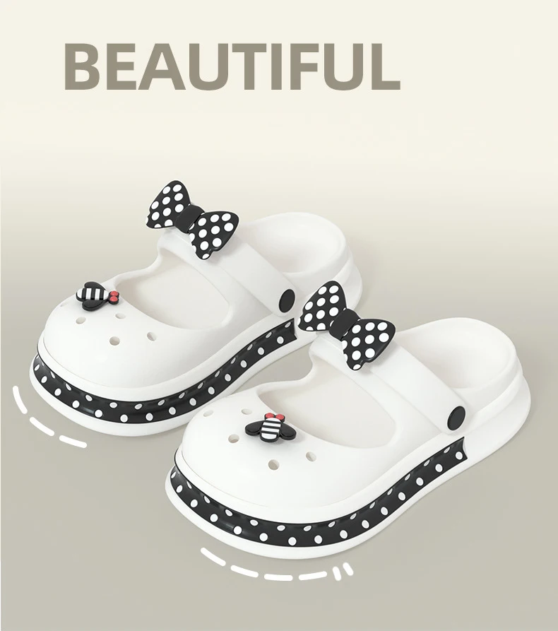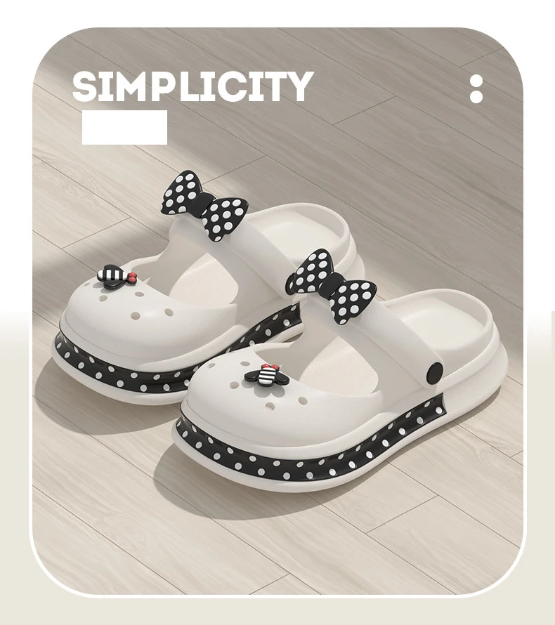 Color: Beige, Shoe Size: 3.5 - Casual Platform Slippers Women Home Flat Summer Cute Bow Designer Shoes Girls Fashion Popular Footwear House Lovely Thick Bottom