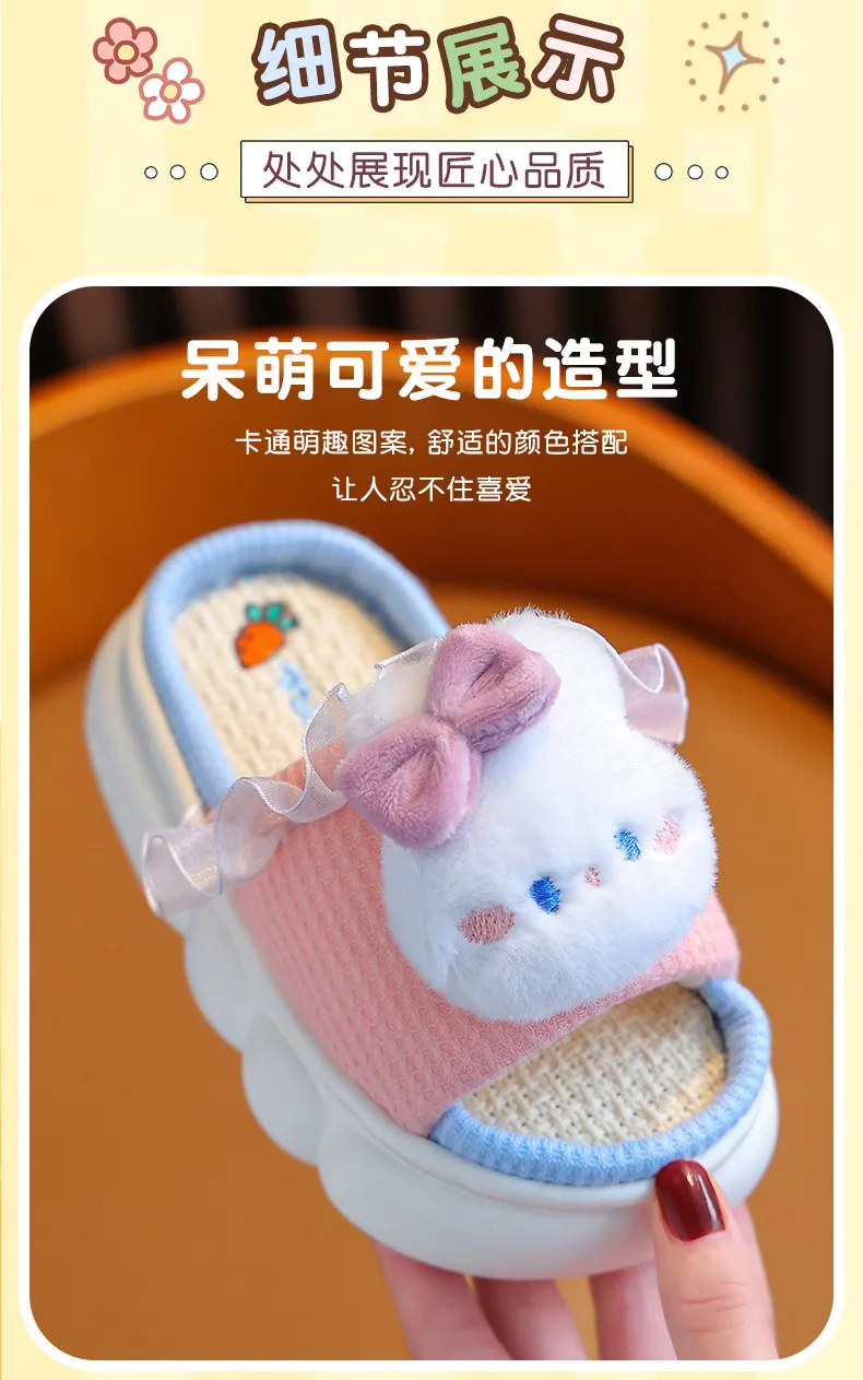 Color: Beige, Shoe Size: 3.5 - Women's Slippers Casual Cute Cartoon Open Toe Platform Slippers Girls' Breathable, Lightweight, Non-slip Home Shoes
