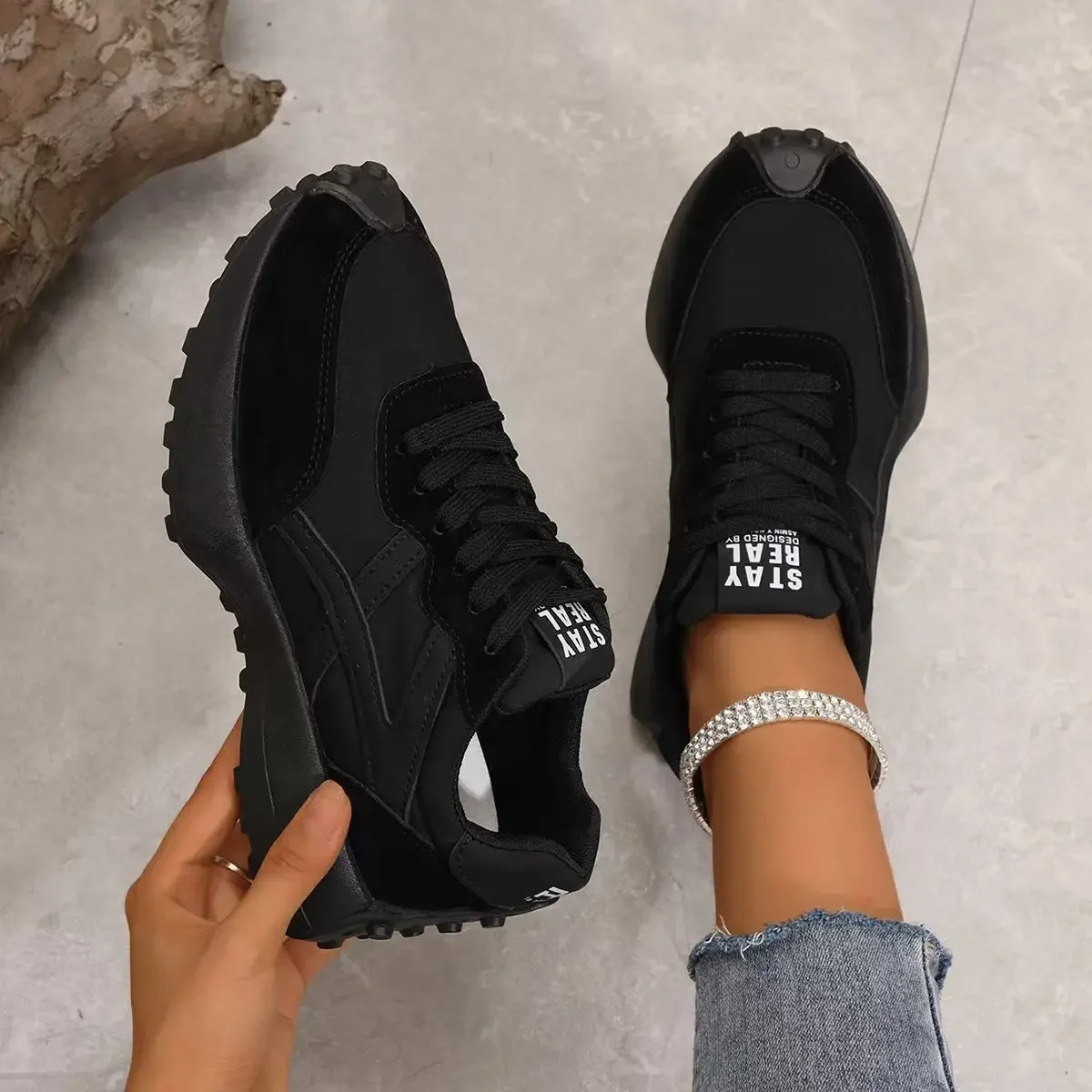 Color: Beige, Shoe Size: 37 - Women Sneakers Leather Luxury Platform Shoes New Fashion Leisure Light Anti-slip Black Running Shoe Fashion Designer Women Shoes