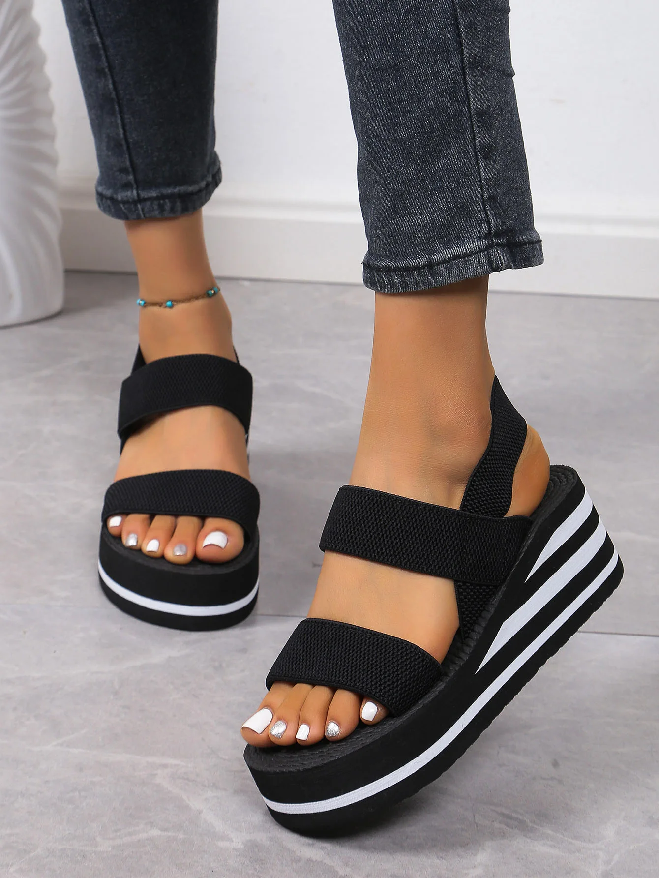 Secure your feet with the strappy back strap, providing stability and a stylish touch.