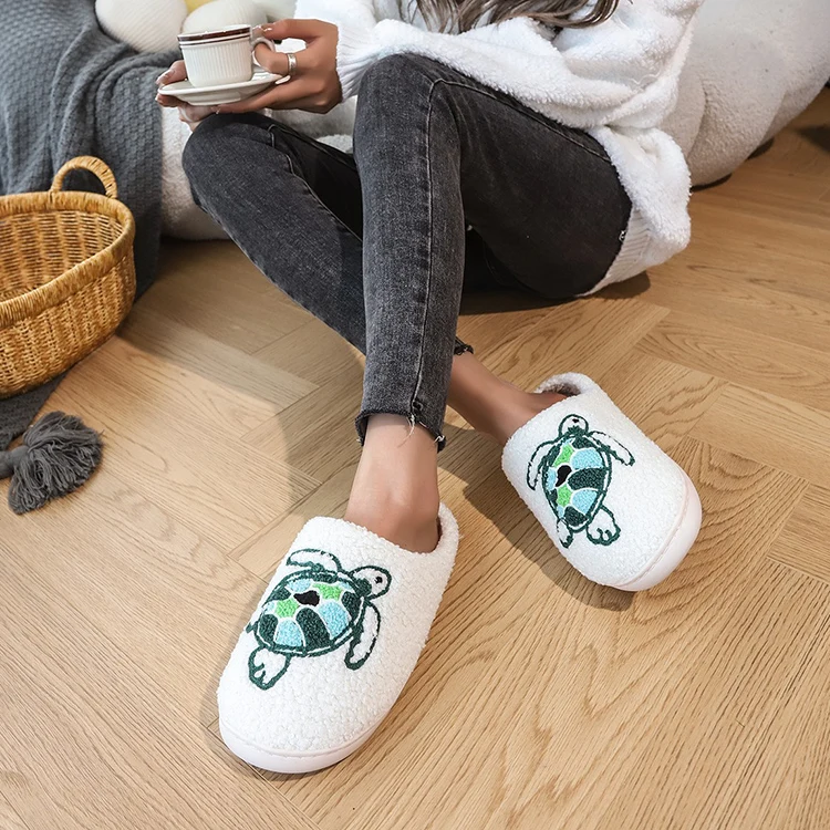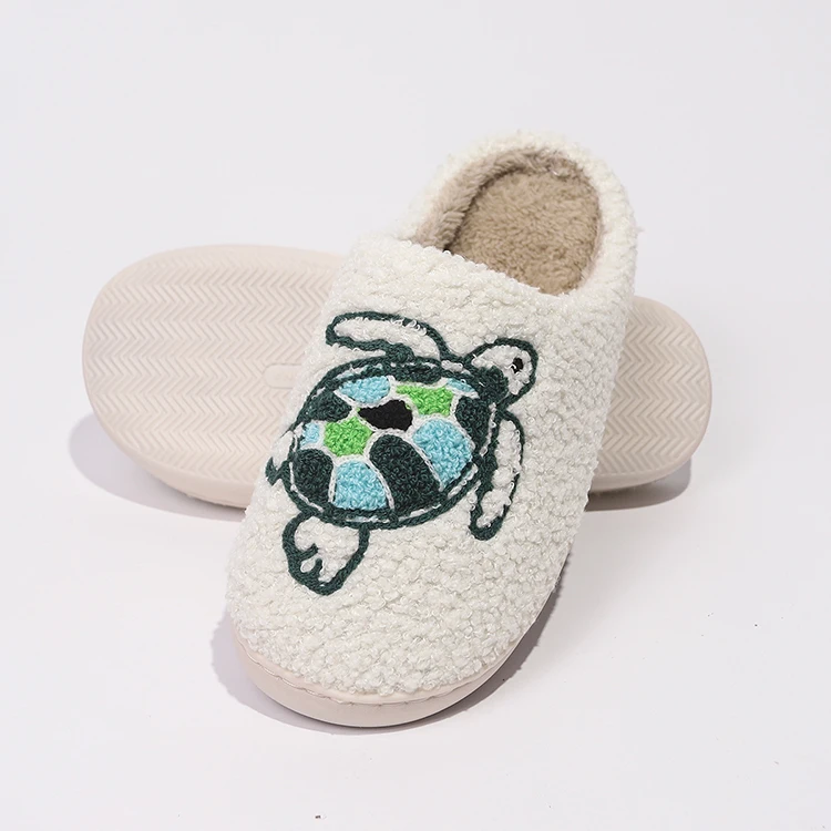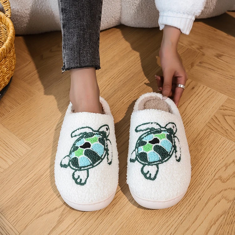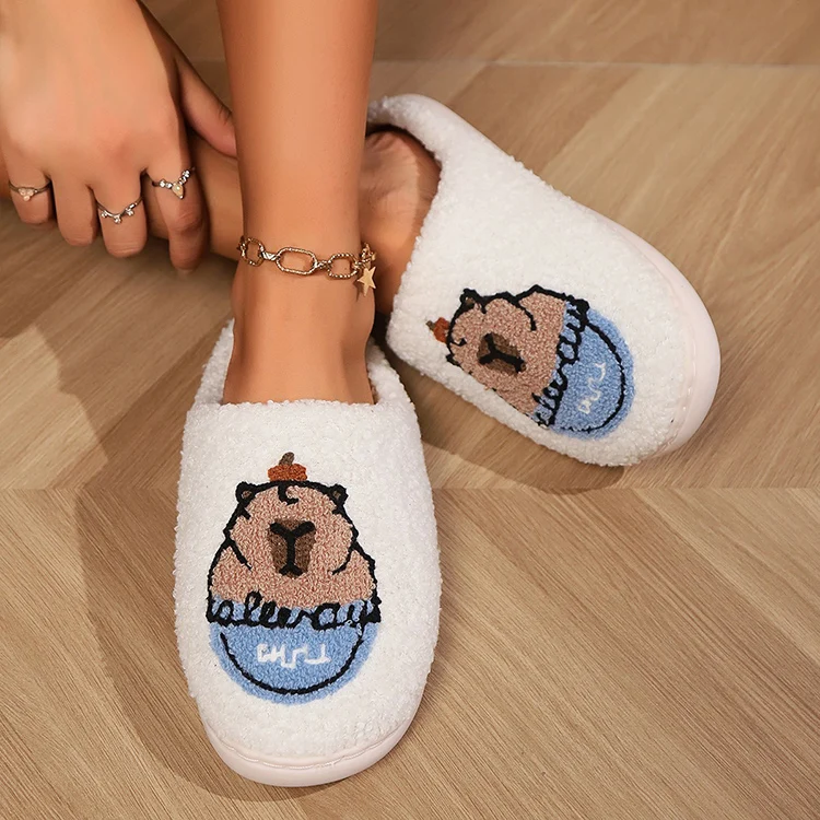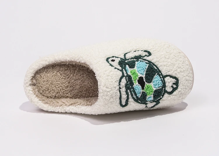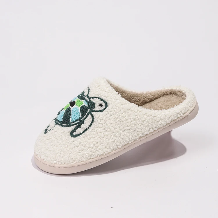 Color: Beige, Shoe Size: 4 - Casual Fluffy Slippers Women House Flat Cute Cartoon Designer Platform Winter Shoes Girls Home Fashion Popular Footwear Big Size