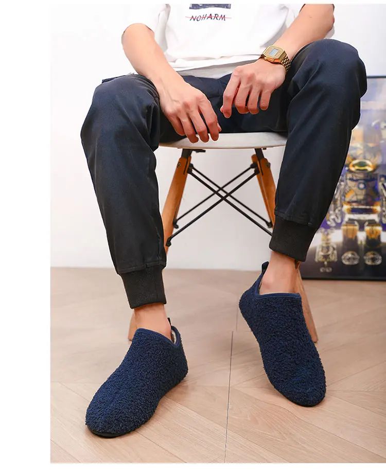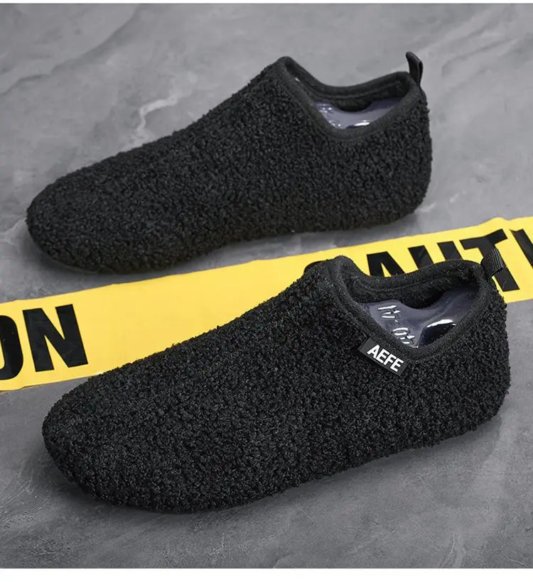 Color: Beige, Shoe Size: 42, Ships From: CHINA - Winter Fashion Men Slippers Plush Male Home Cotton Shoes Warm Anti-slip Men's Casual Shoes Flexible Solid Flats 39-47 Slip On