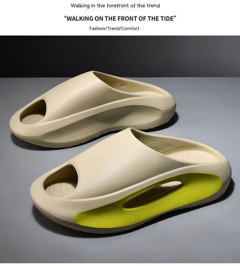 Color: Beige, Shoe Size: 44-45 - Summer Slippers Men Women EVA Soft Bottom Indoor Home Slides Sandals Light Beach Shoes Male Slippers Flip Flops Big Size 46 47