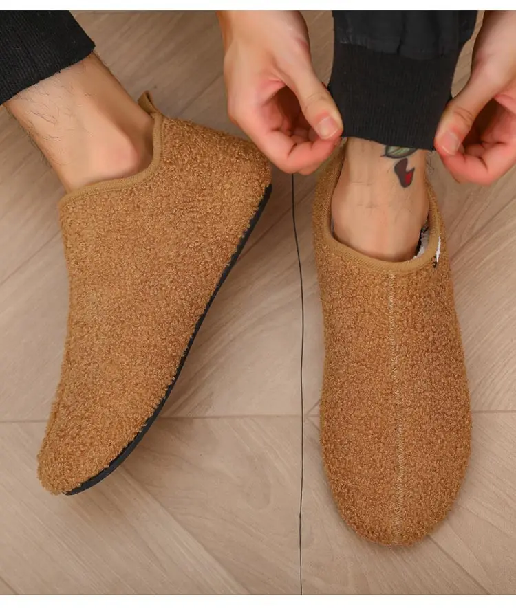 Color: Beige, Shoe Size: 44, Ships From: CHINA - Winter Fashion Men Slippers Plush Male Home Cotton Shoes Warm Anti-slip Men's Casual Shoes Flexible Solid Flats 39-47 Slip On
