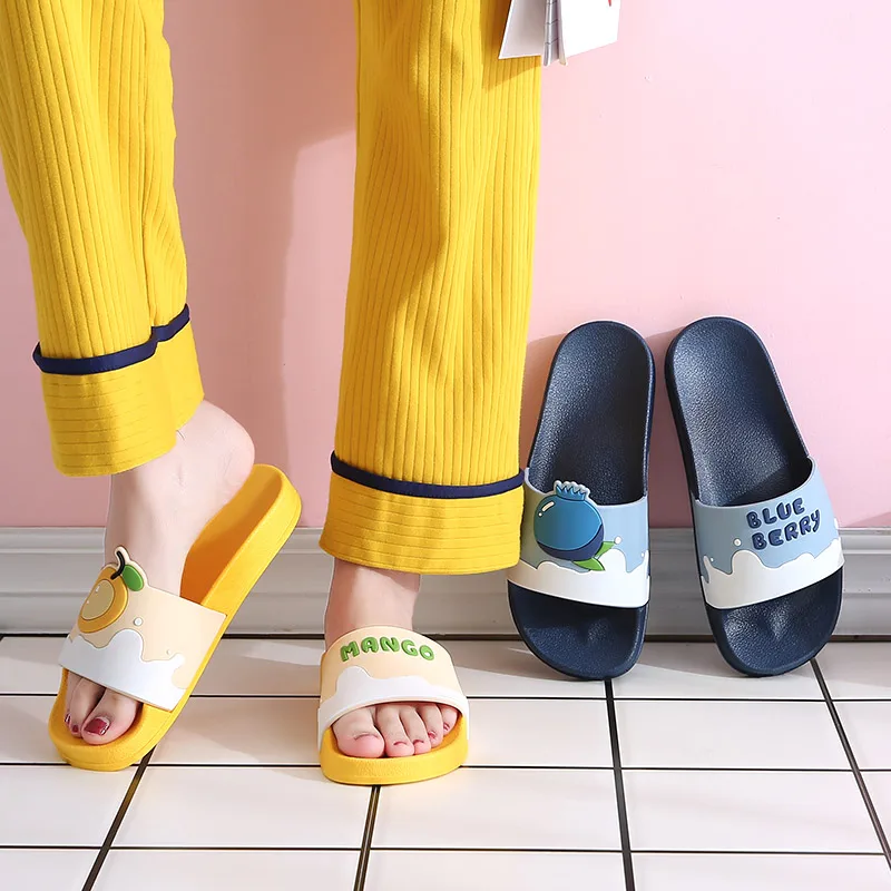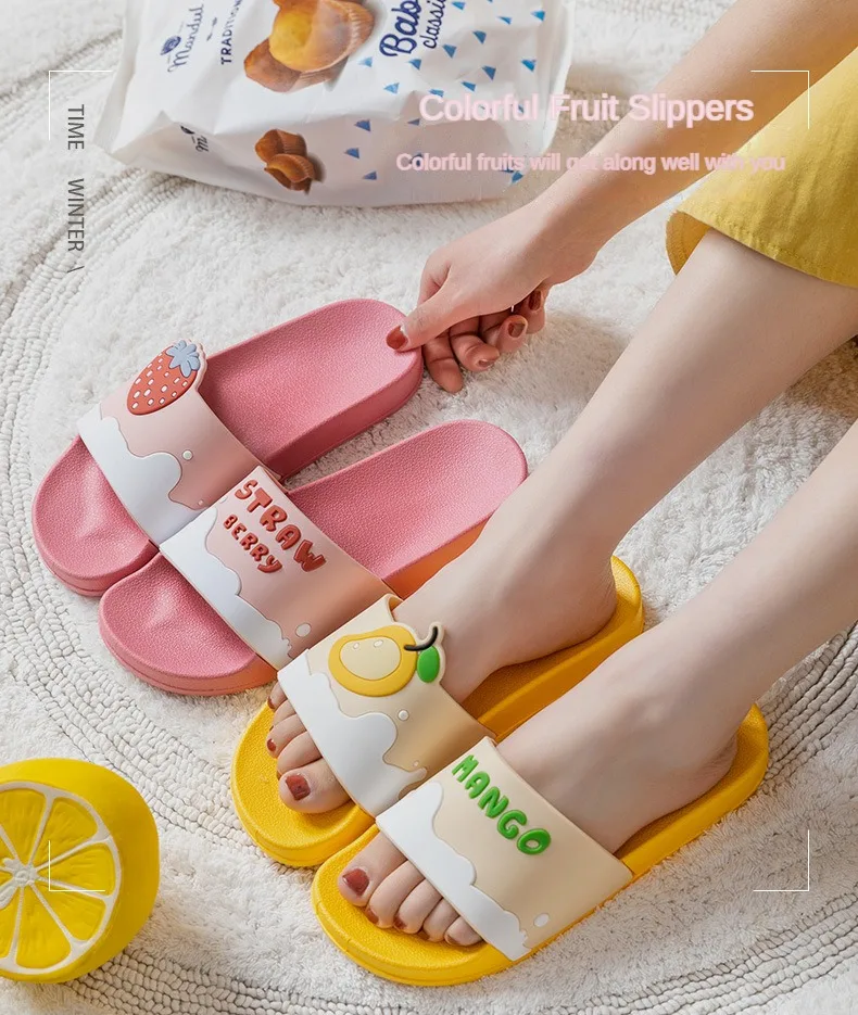 Color: Beige, Shoe Size: 4.5 - New Shoes for Women PVC Slippers Fashions Cartoon Fruit Sandals Flip Flops Summer Casual Beach Home Bath Thick Non-Slip Slippe