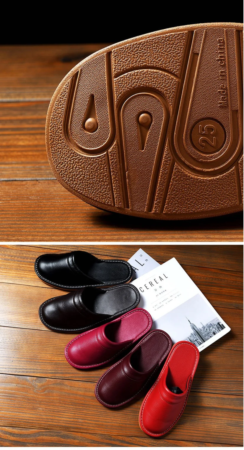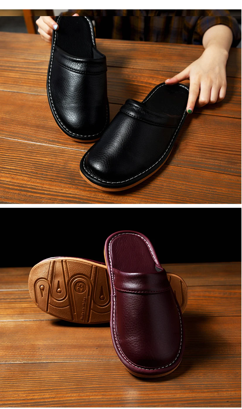 Color: Beige, Shoe Size: 5 - Mens Bedroom Leather Slippers Unisex Black Home Shoes Big Size 47 48 Man's Slippers Indoor Comfy Males Slides Family Flats Shoes