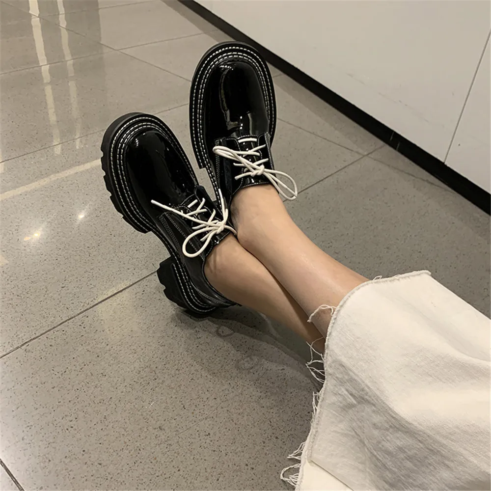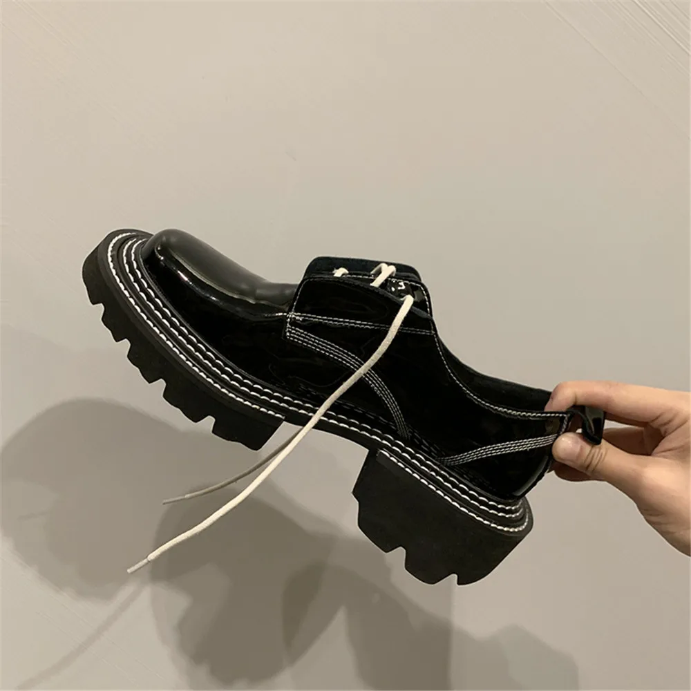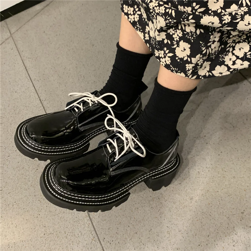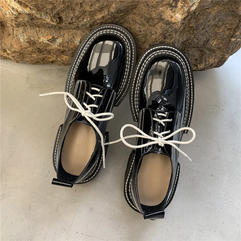 MILI-MIYA New Arrival Thick Heels Women Cow Patent Leather Pumps Lace Up Round Toe Fashion Street Casual Shoes Size 34-42 For Ladies