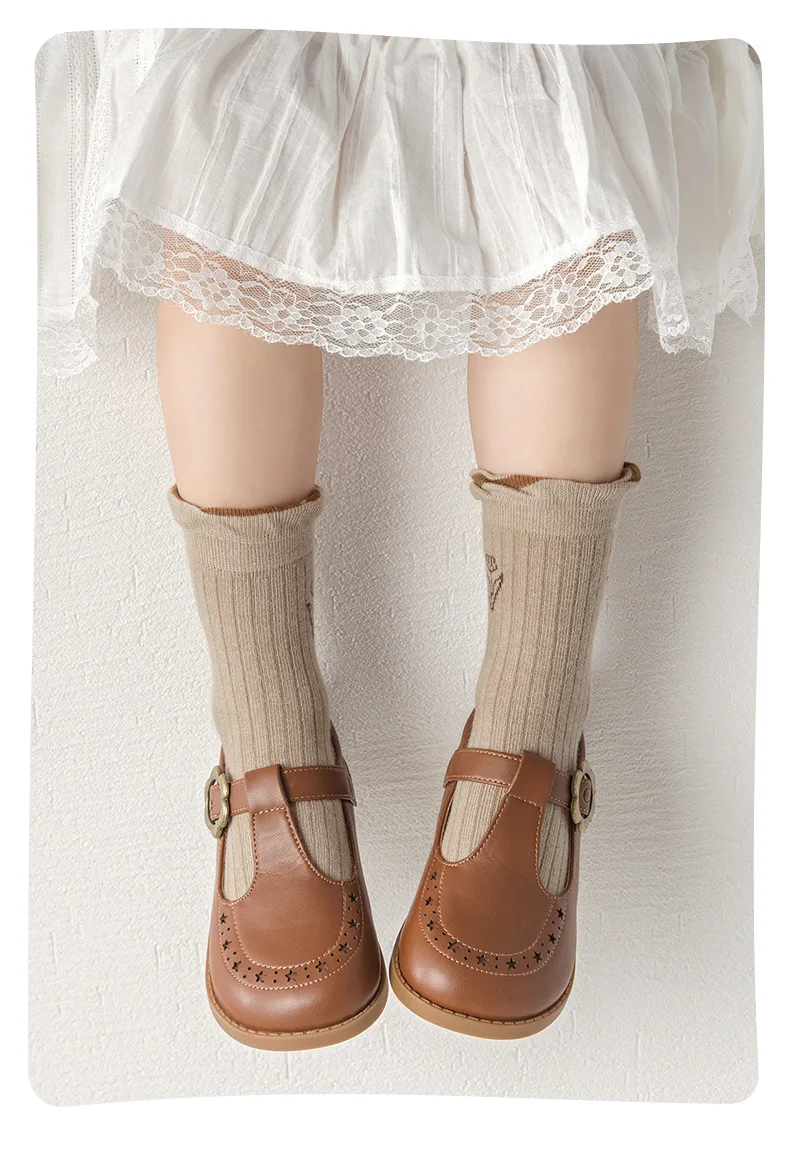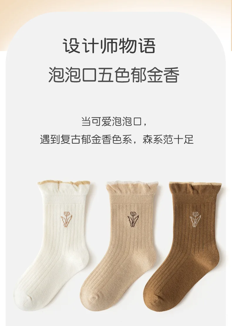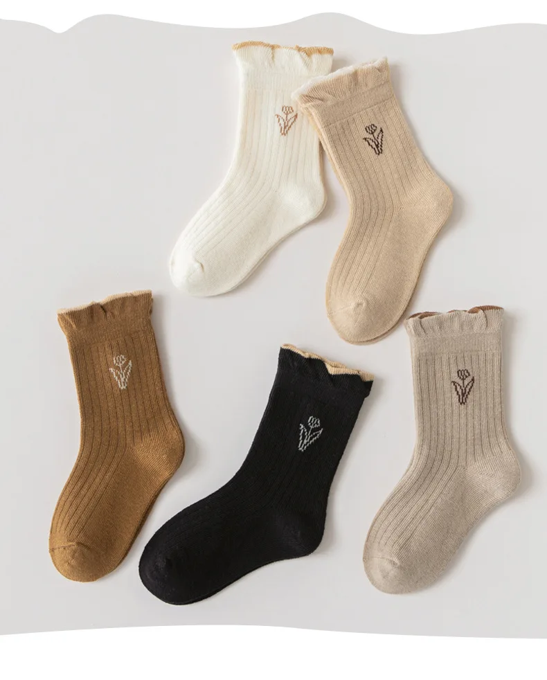 Color: Beige, Size: 10-12T - 3-12Y Girls Socks Spring Autumn Sweet princess Ruffle Medium Socks Cotton Socks 5 Pairs