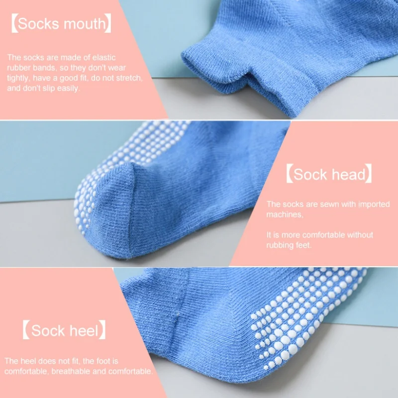 3.The heel tabs around the ankle cuff make these baby socks more easy to put on or take off and provide a smooth feel and protects kid's sensitive feet.