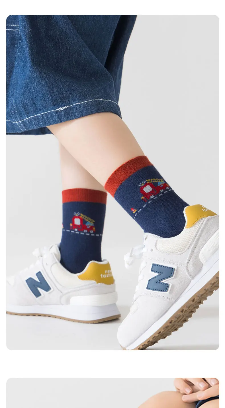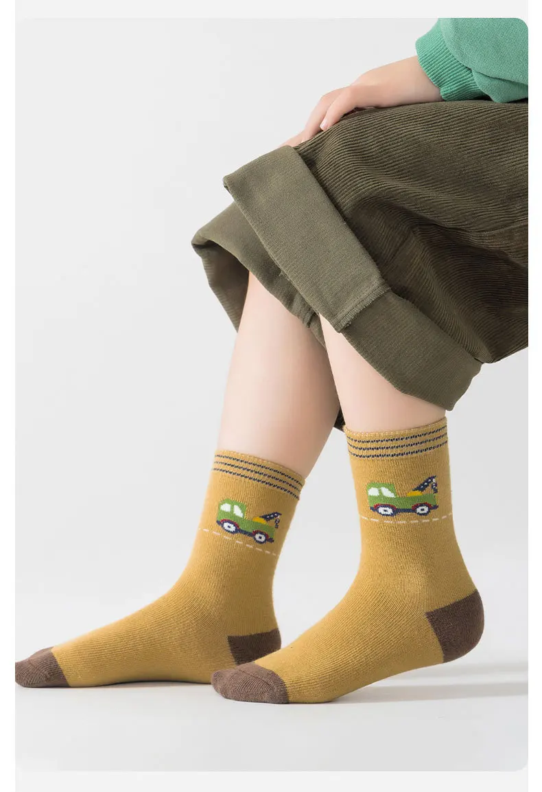 Color: Beige, Size: 4-6T - Autumn Socks Baby Socks Cute Truck Car Pattern Socks Boys Medium Socks Kids Autumn Winter Cotton Socks 5packs