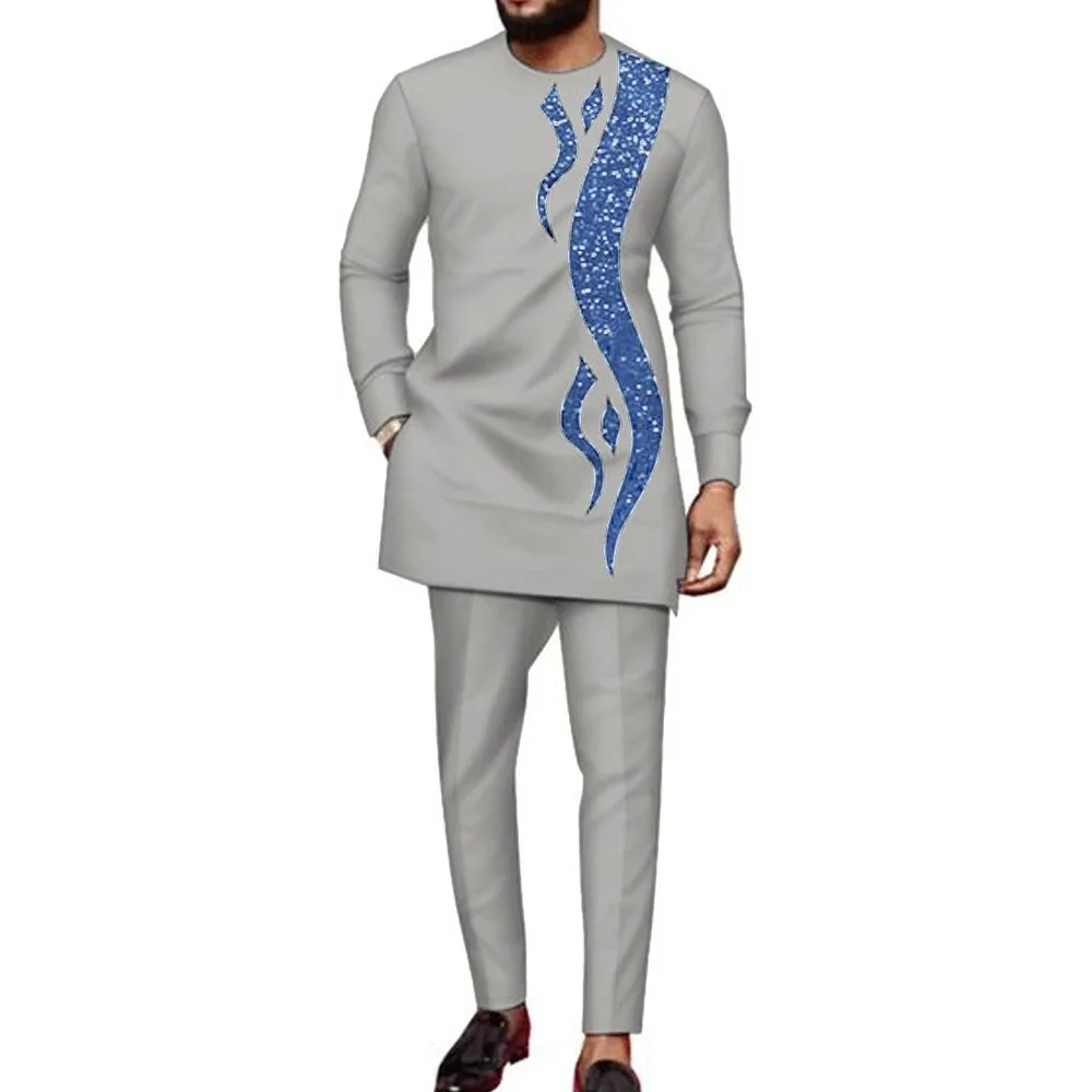 Color: Beige, Size: 4XL - 2024 New African Traditional Men's Set Elegant and Fashionable Men's Suit Casual Embroidery Two Piece Set Men's Suit Kaftan