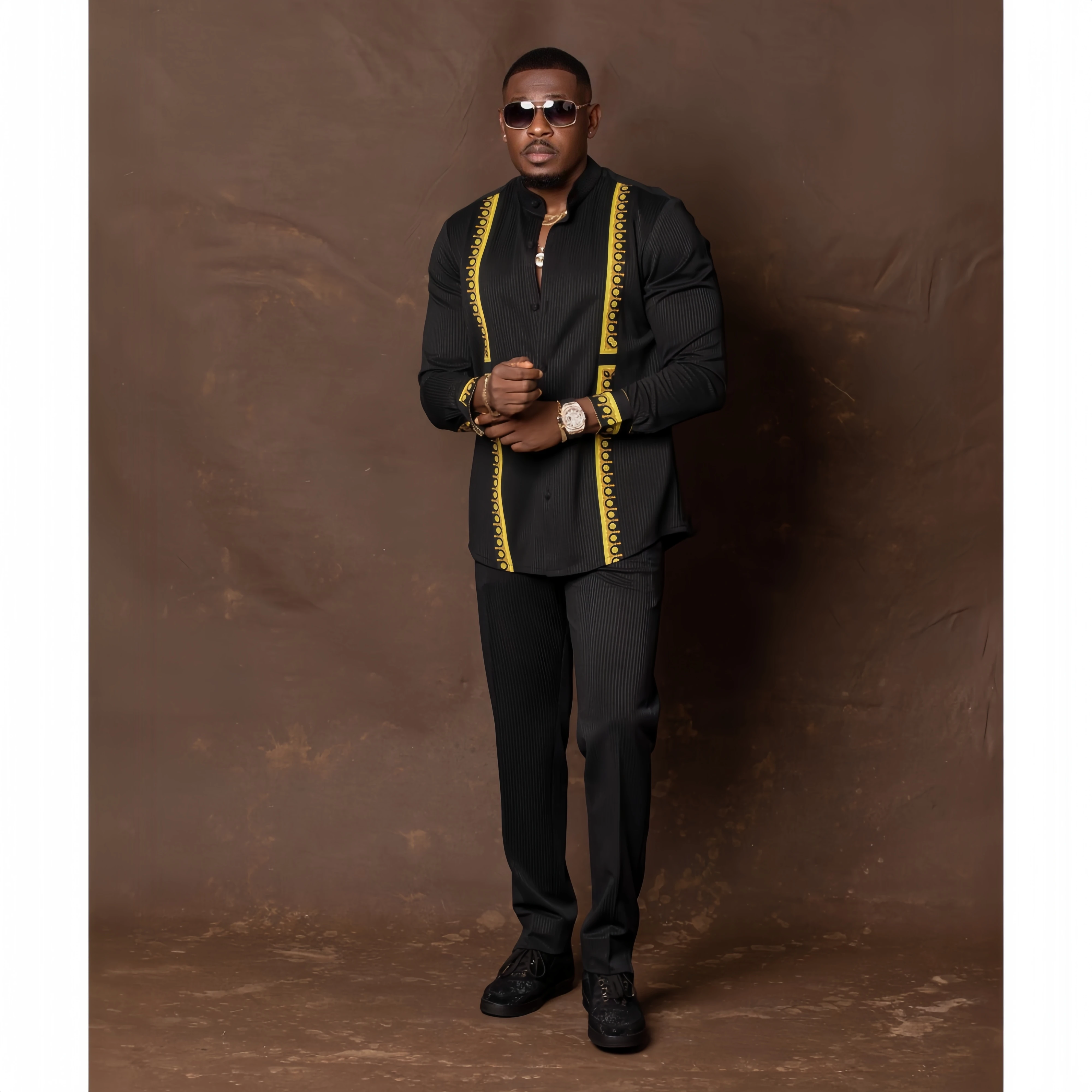 Color: Beige, Size: L - 2025 new traditional men's suit luxury gentleman's shirt suit casual travel banquet men's two-piece set fashionable men's suit