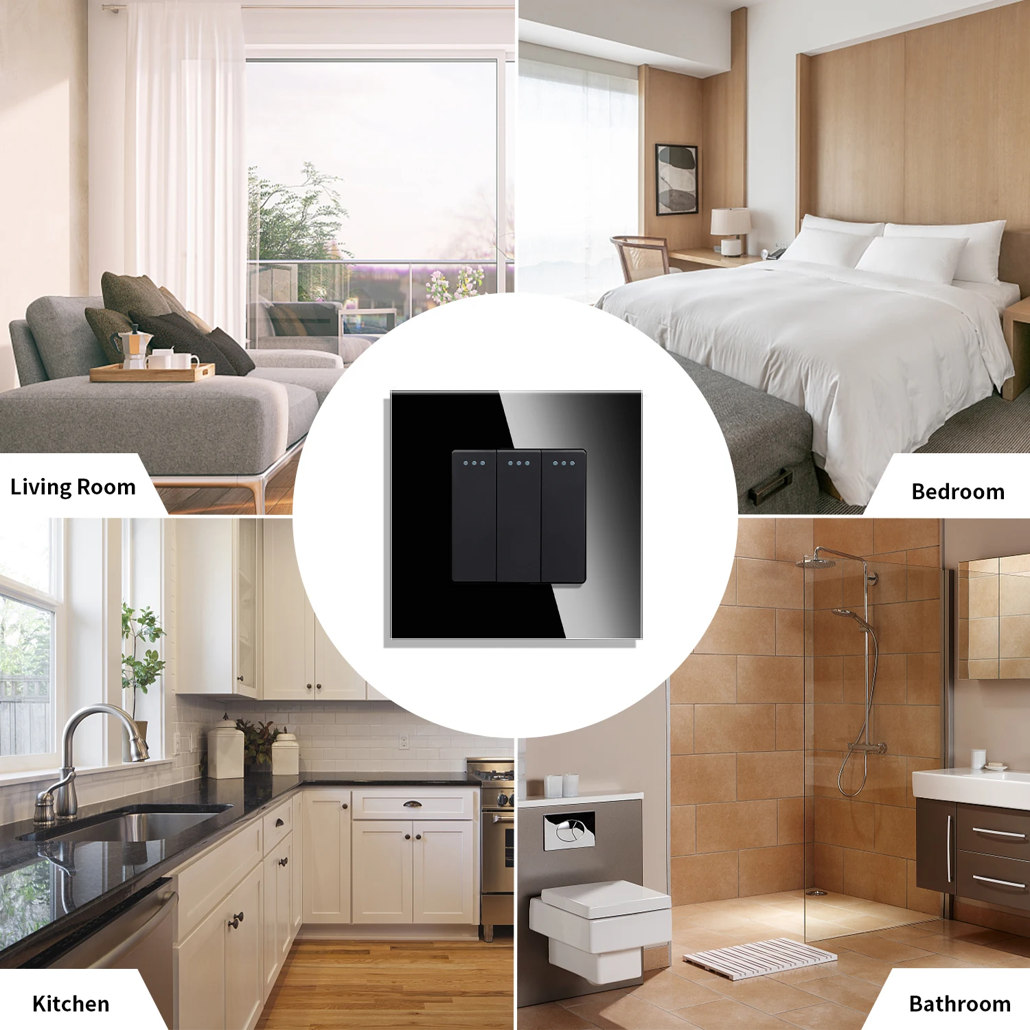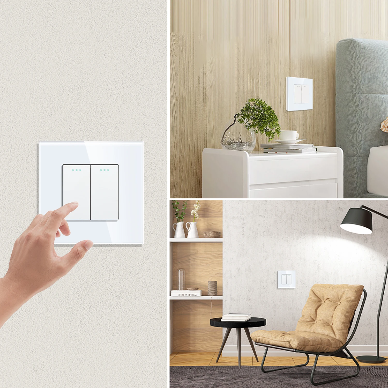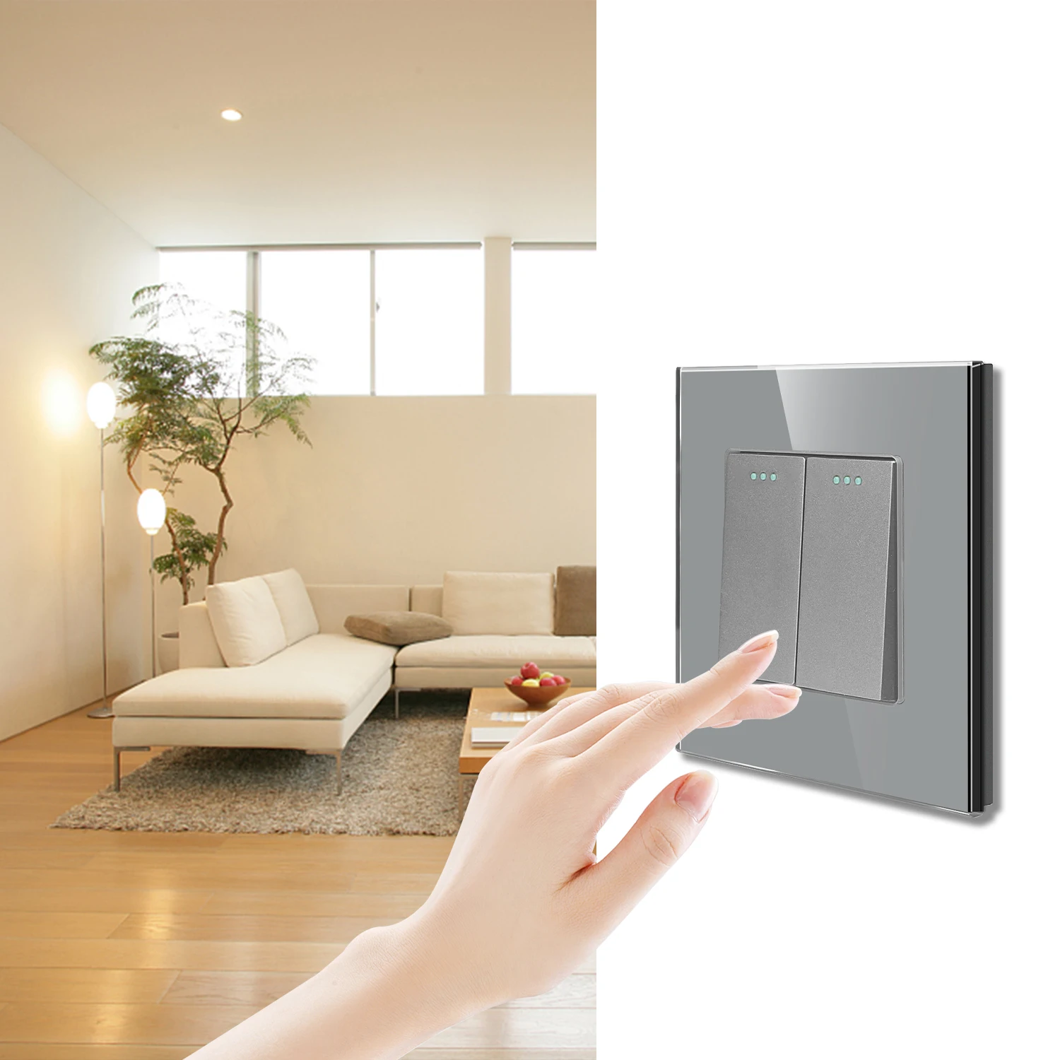 Color: Beige, Size: L, Ships From: CHINA - Bingoelec Push Button Switch 1/2/3 Gang 1 Way 2 Way 3 Way EU Standard Home light Switch Crystal Glass Panel Wall switch