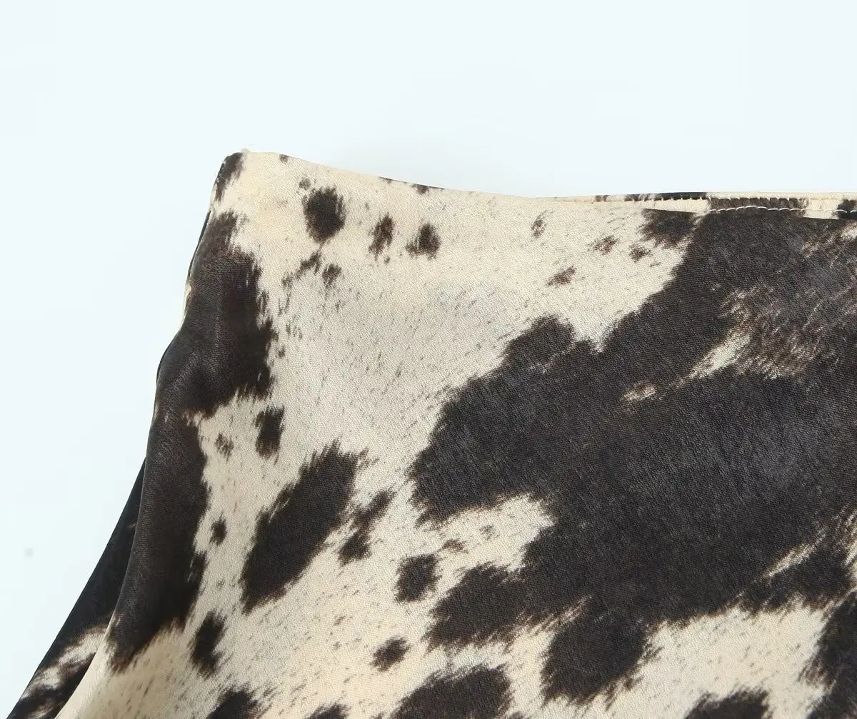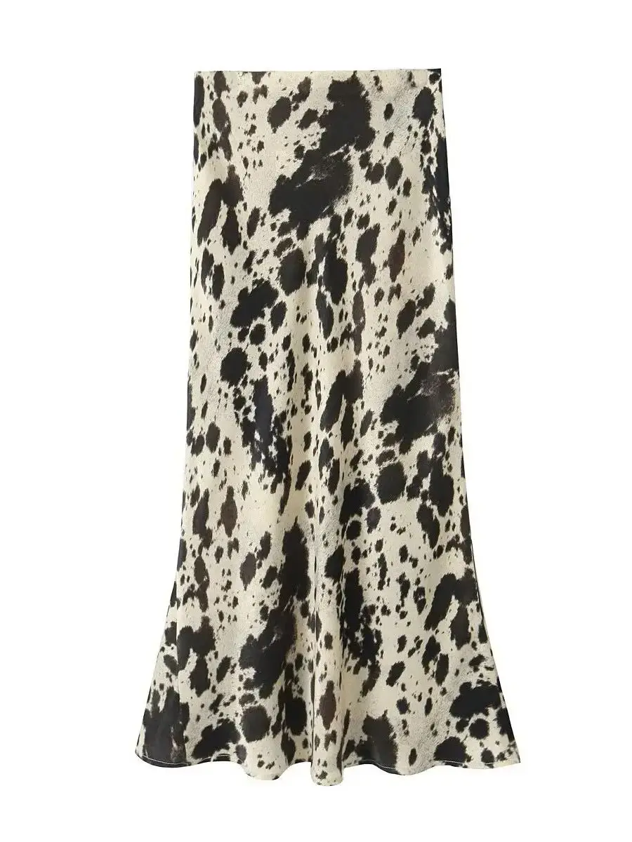 Color: Beige, Size: L - Spring and Autumn New Women's Versatile Animal Pattern Printed Silk Satin Texture Midi Half length Skirt