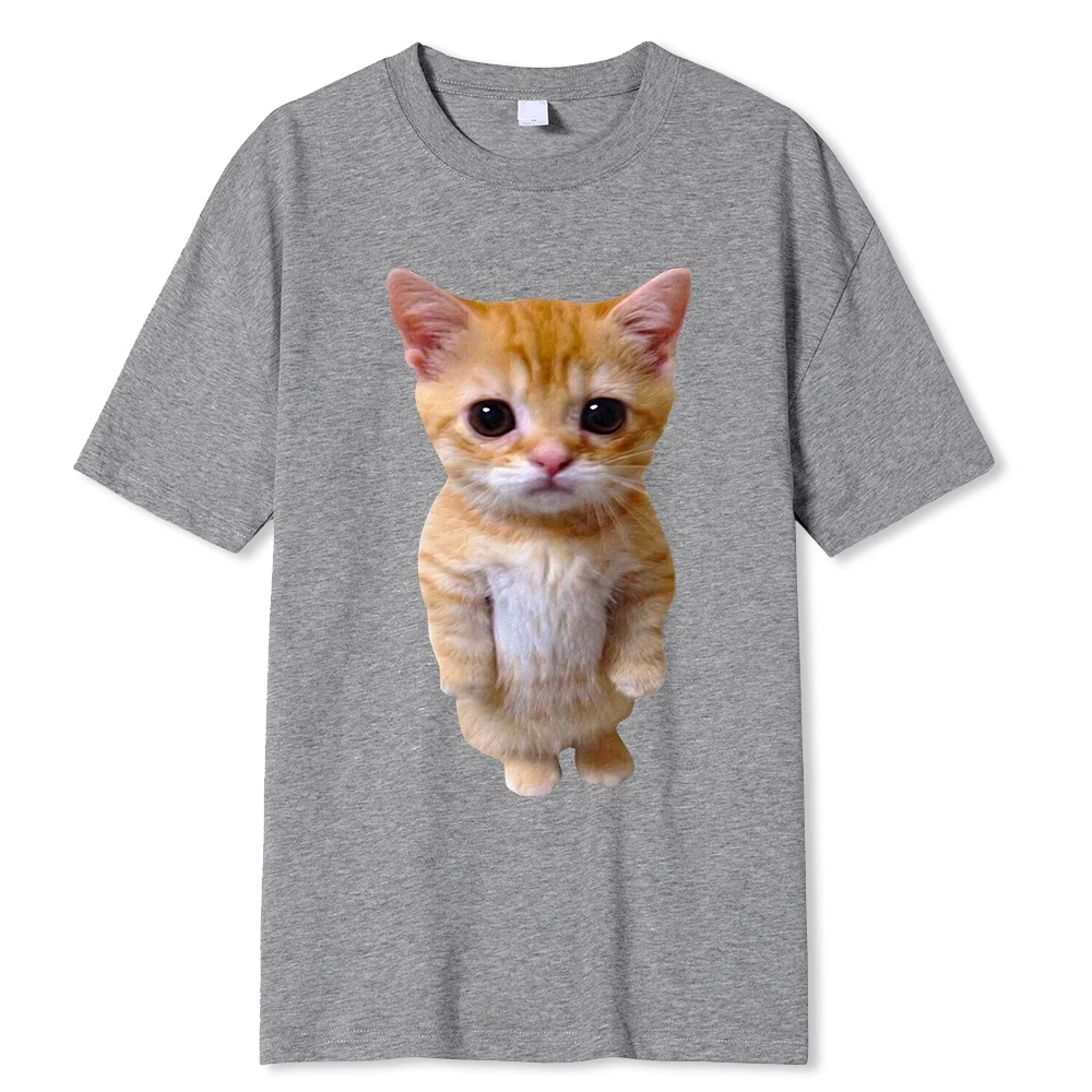 Color: Beige, Size: M - El Gato Meme Sad Crying Cat Munchkin Kitty Meme Trendy Graphic T-shirt Unisex Fashion Short Sleeve T-shirts Oversized Streetwear
