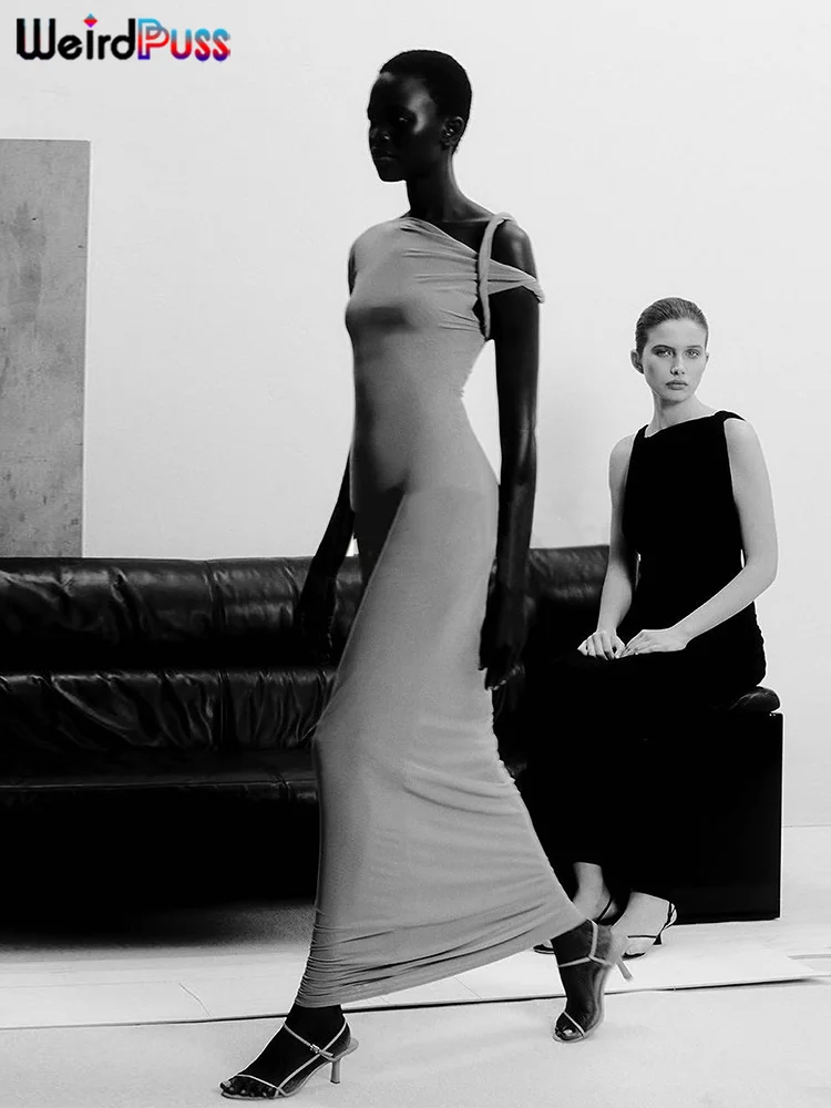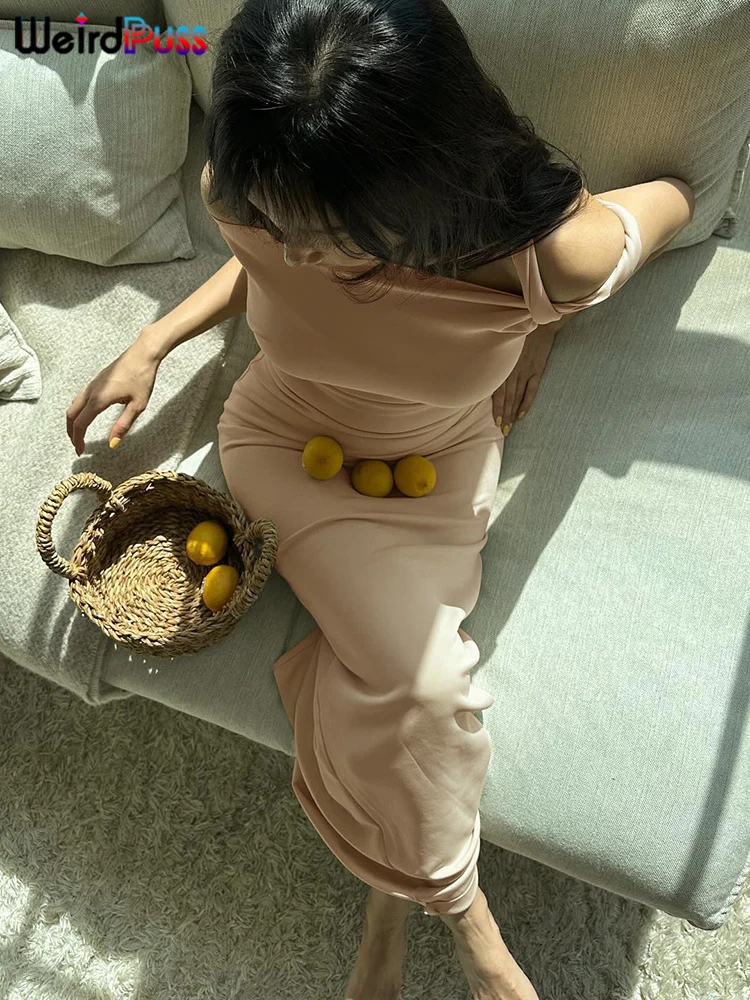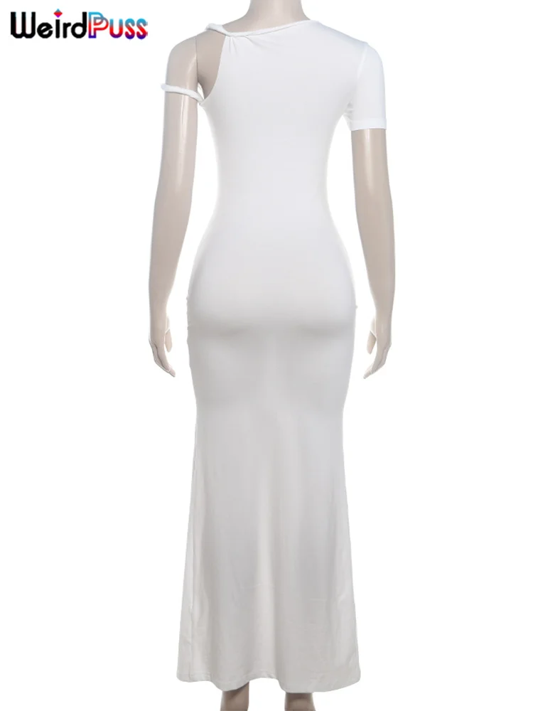 Color: Beige, Size: M - Weird Puss Bandage Dress Woman Summer Sexy Irregular Solid Sheath Chic Stretch Body-Shape Smooth Birthday Party Elegant Bodycon