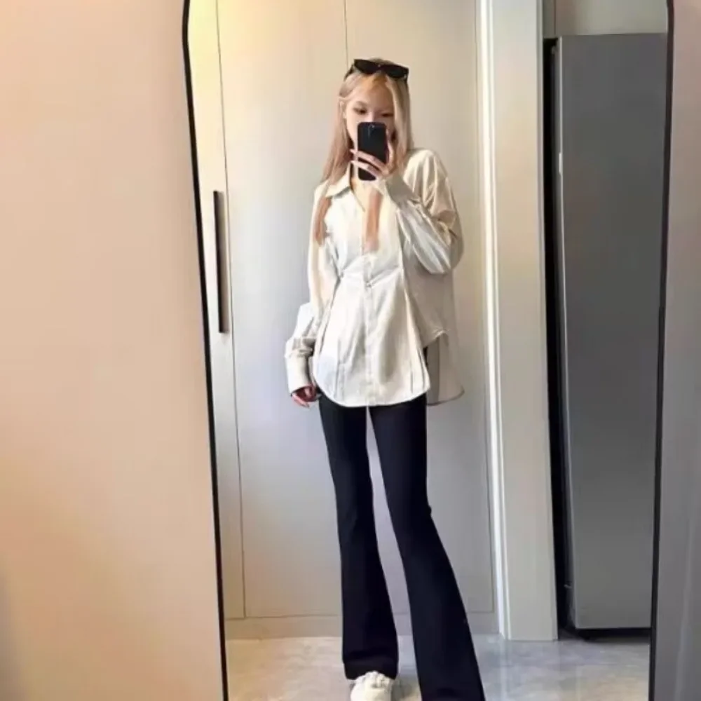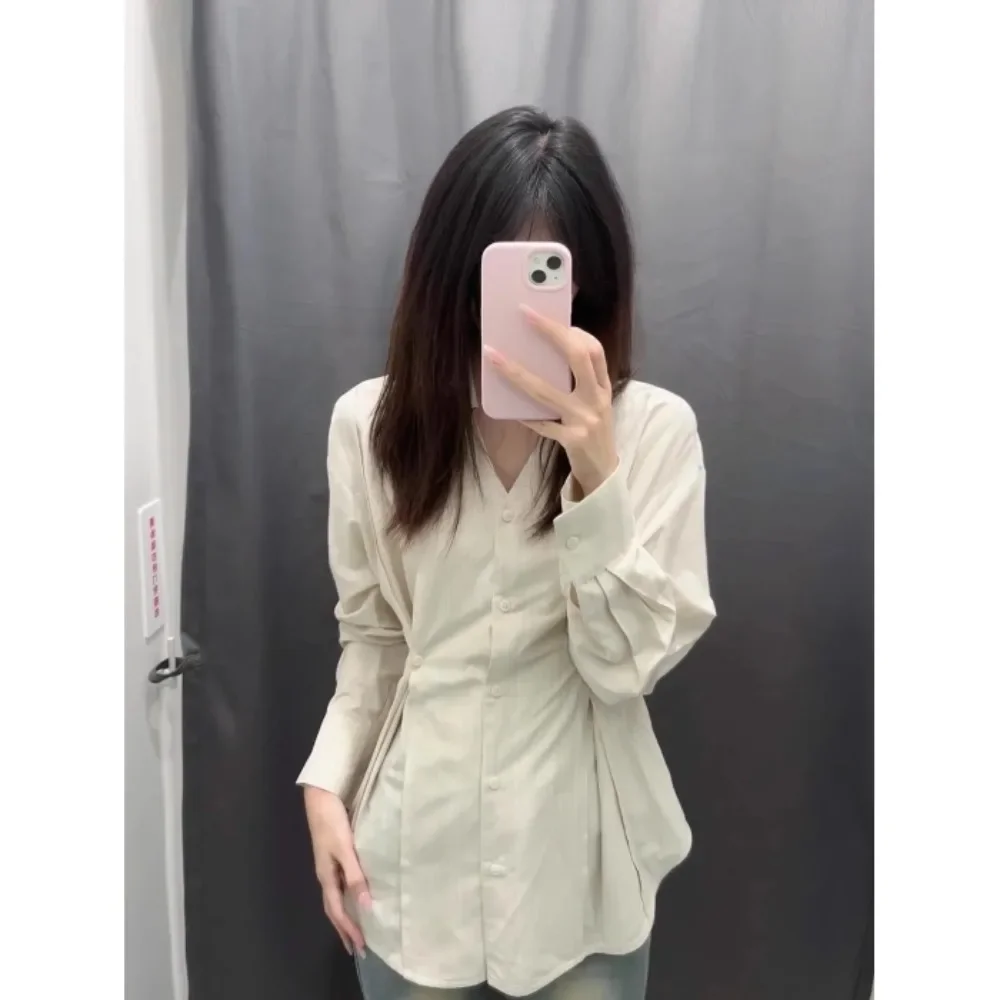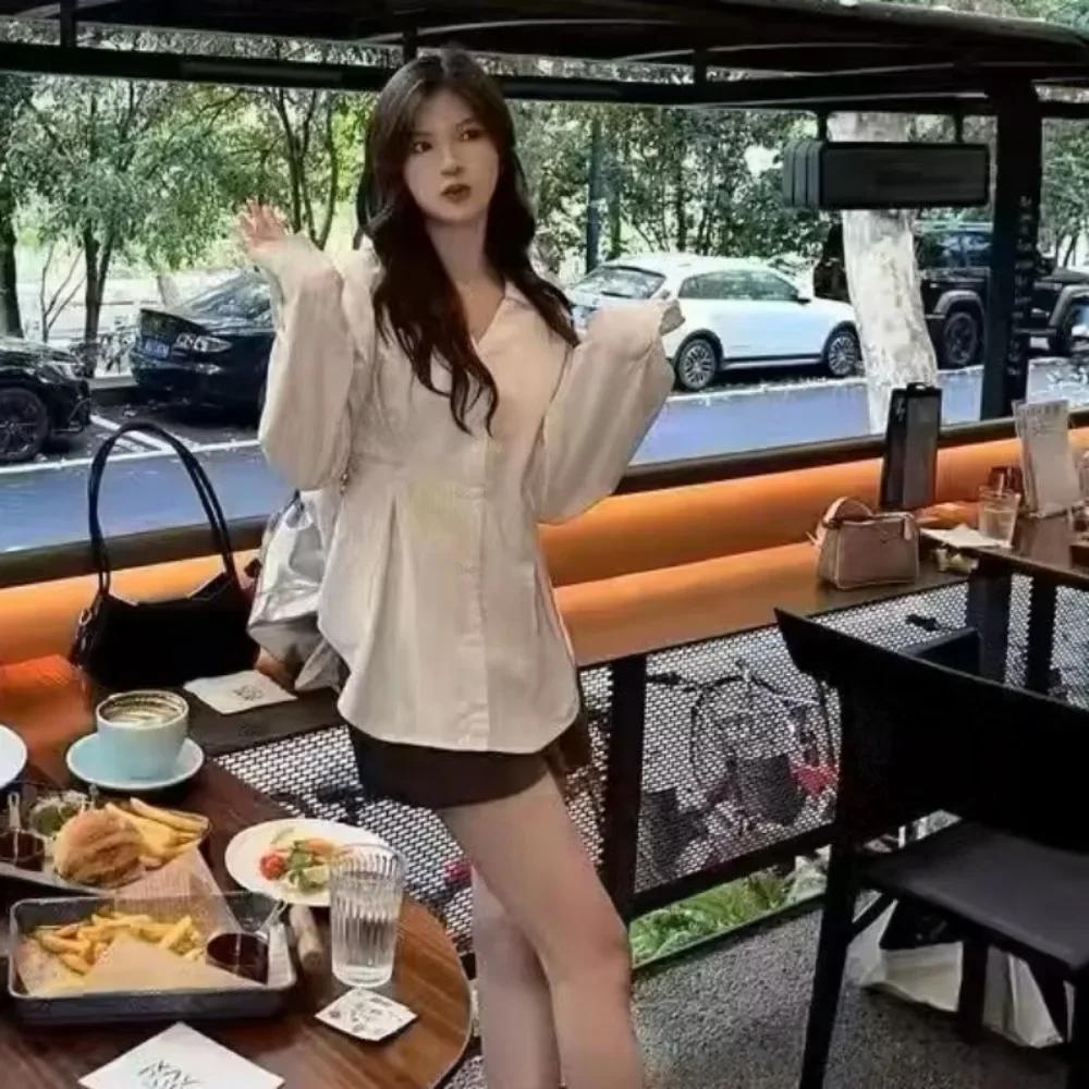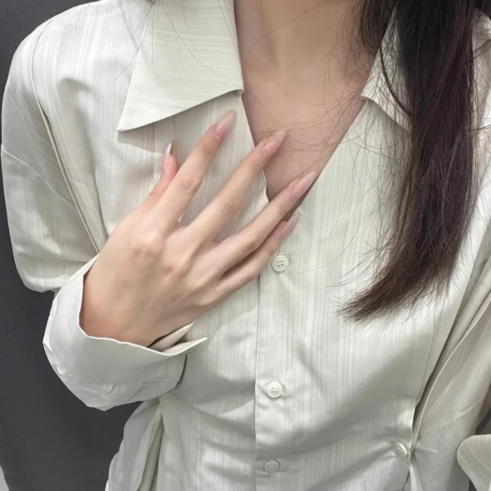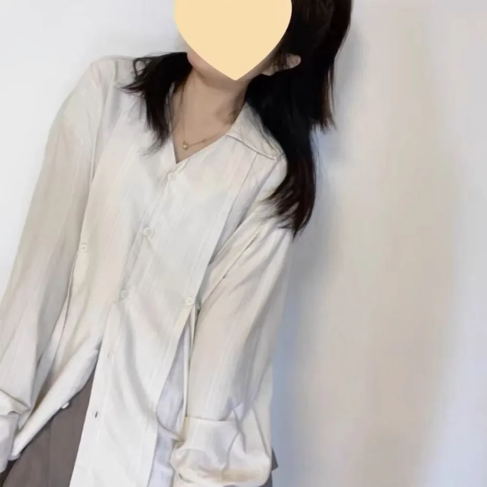 Color: Beige, Size: S - OL Shirts Women Slim Irregular Hem Design Single Breasted Design New Long Sleeve Tops Korean Trendy Simple All-match Temperament