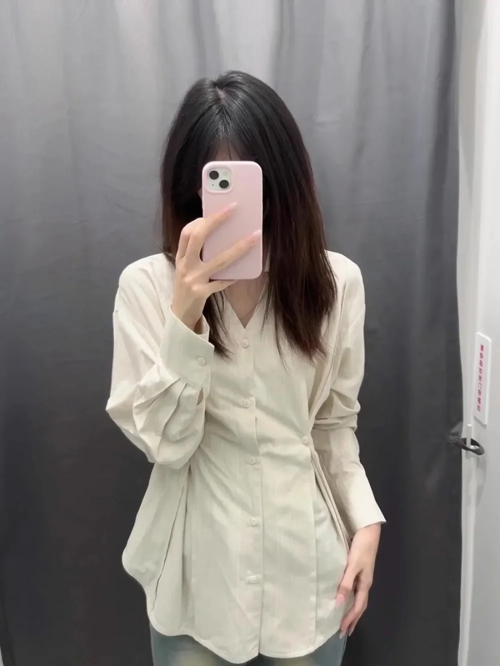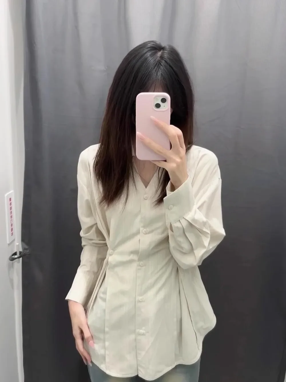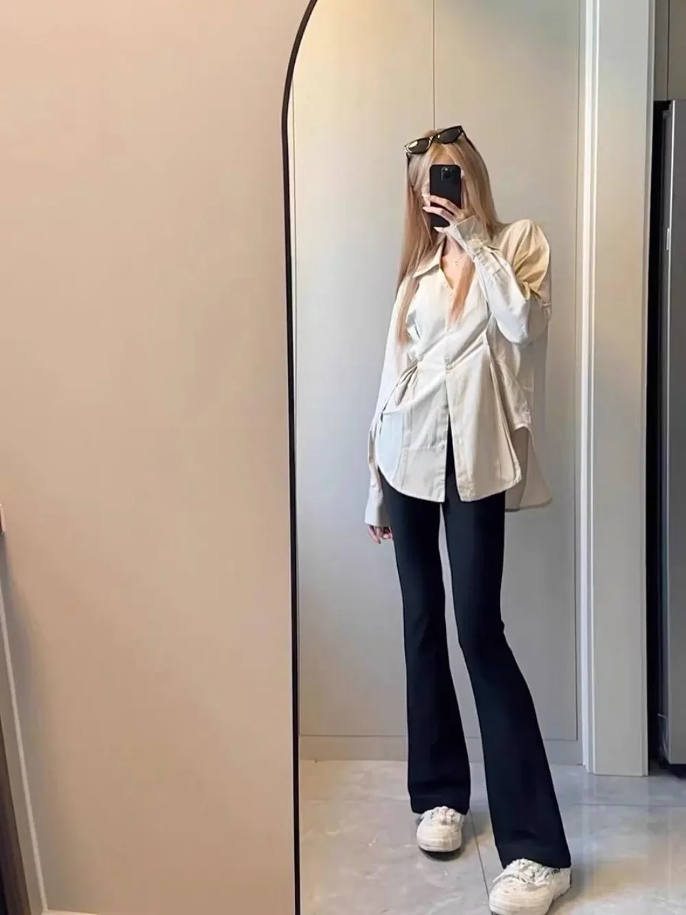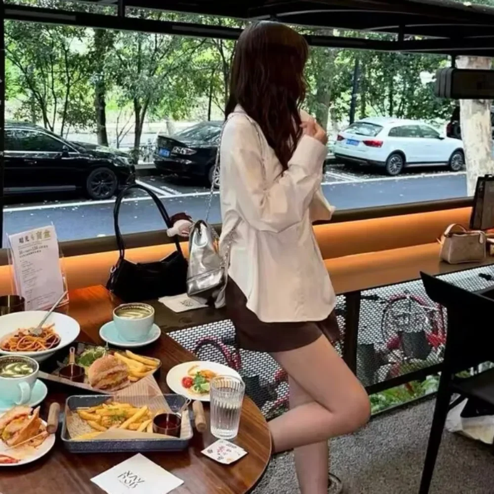 Color: Beige, Size: S - OL Shirts Women Slim Irregular Hem Design Single Breasted Design New Long Sleeve Tops Korean Trendy Simple All-match Temperament