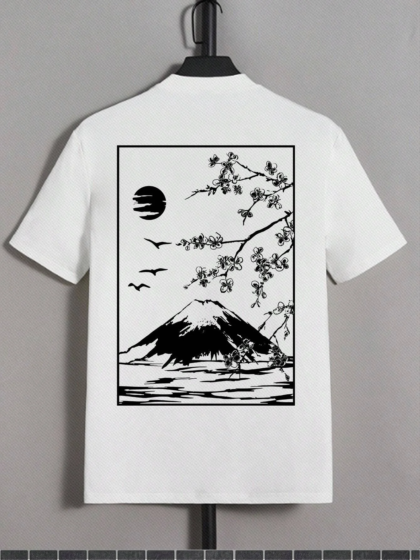 Color: Beige, Size: S - Tokyo Sakura Mount Fuji Business Card T Shirt Men Fashion Tee Clothing Cotton Summer Casual Tops Hip Hop Loose Cotton T-Shirt