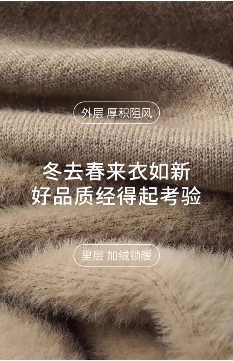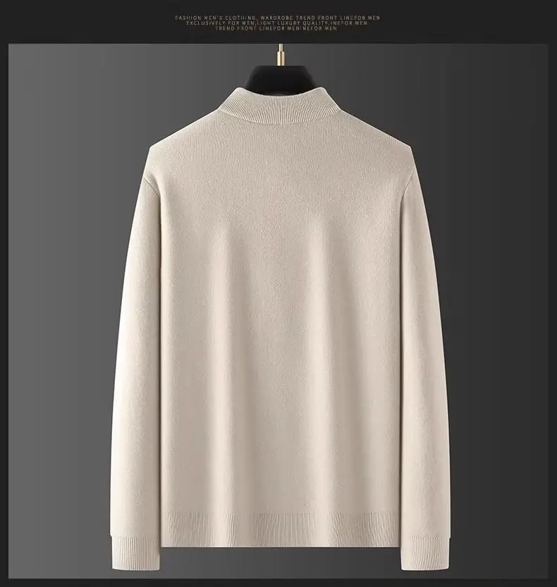 Color: Beige, Size: XL - Autumn Winter Men's Turtleneck Sweater Knitted Velvet Warm Long Sleeve Pullover Outdoor Cold-proof Casual Blouse Base Sweater