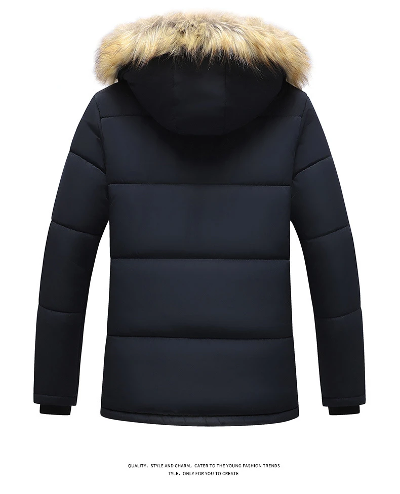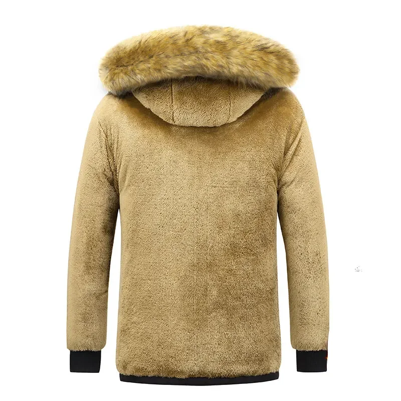 Color: Beige, Size: XXL - 2024 New Men Winter Autumn Work Outwearing Parka Black Fleece Lined Thick Warm Hooded Fur Collar Coat Male Size 5XL Plush Jacket