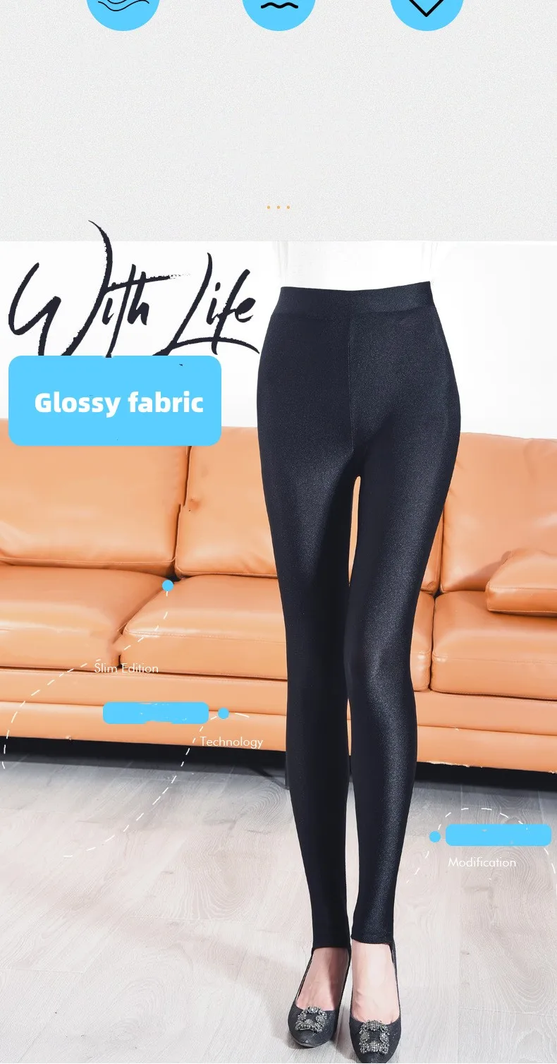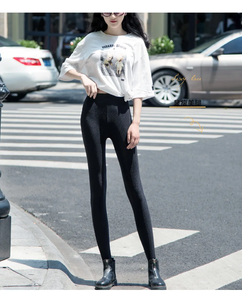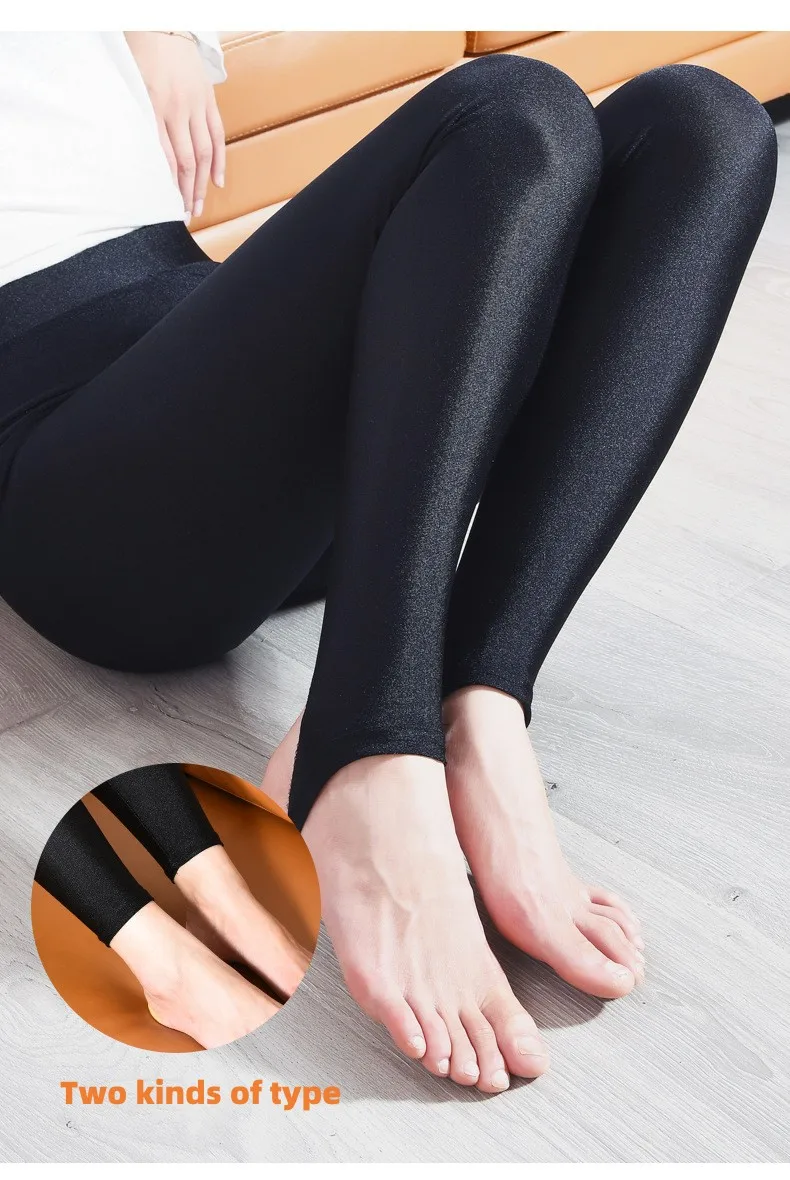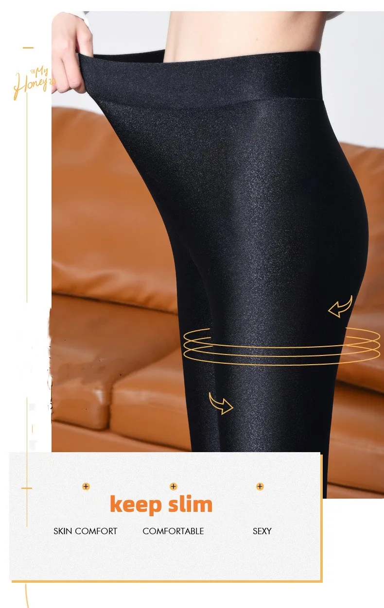 Color: Beige, Size: XXL - 6XL Large Size Women's Leggings Winter Thermal Tights Thin Fleece High Waist Sexy Slim Elastic Pants Female Luster Leggings
