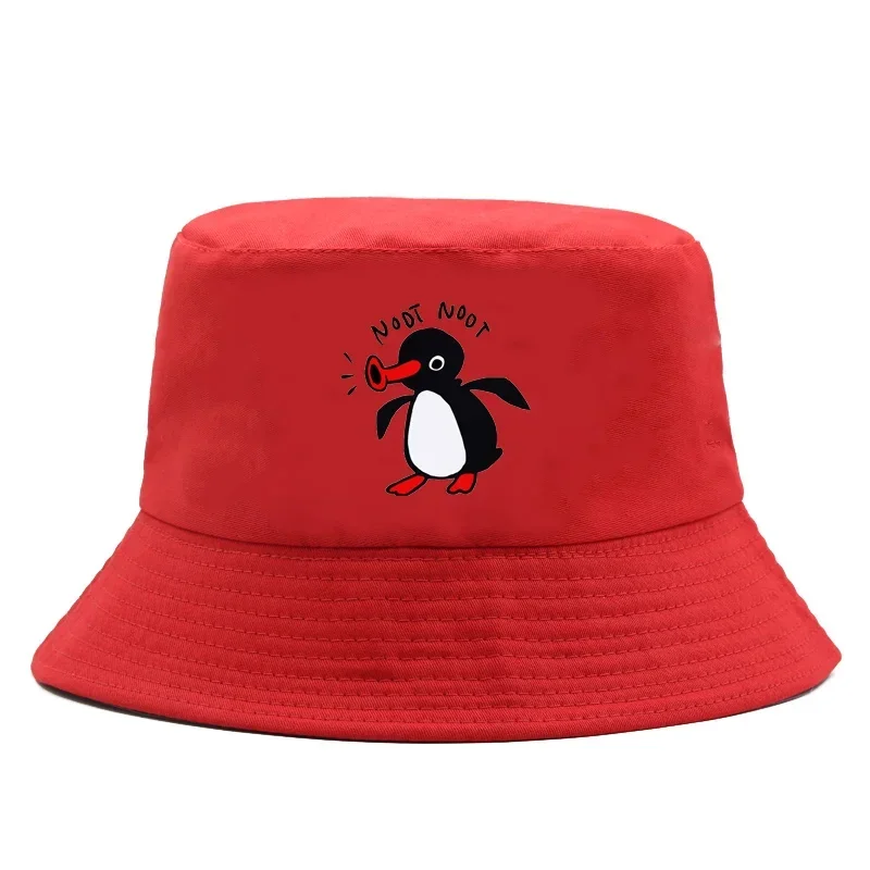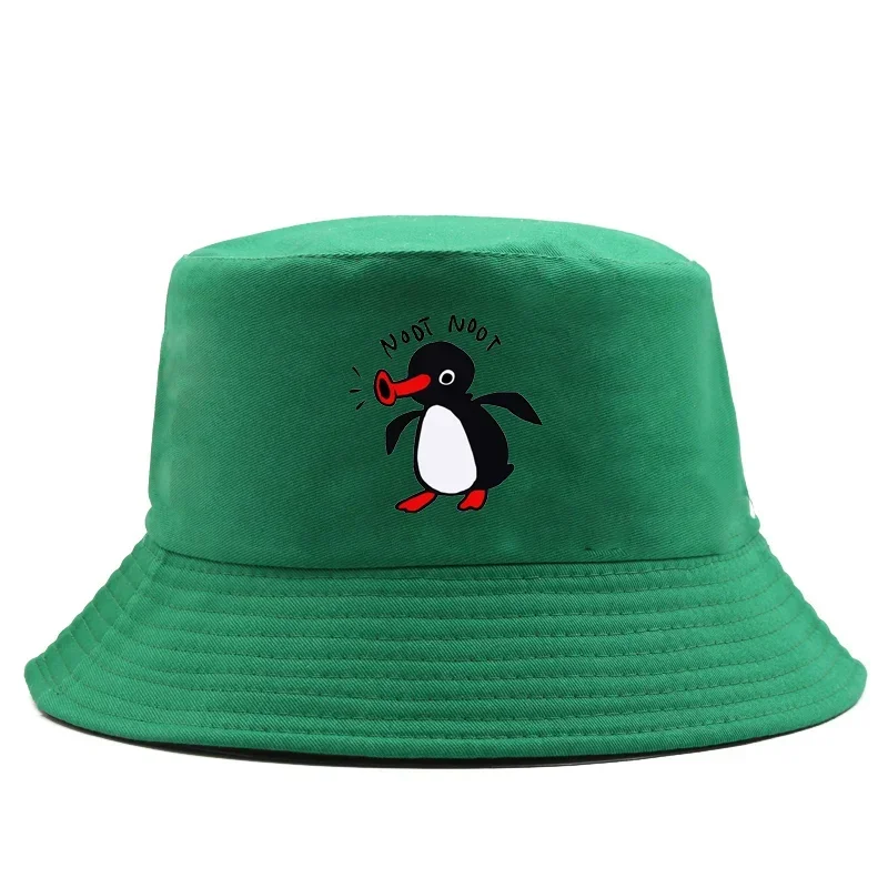Color: Beige - Summer Penguin Bucket Hat Reversible Bob Men Women Cotton Travel Beach Fisherman Hat Outdoor Sports Pull Up Bob Panama Sun Hat