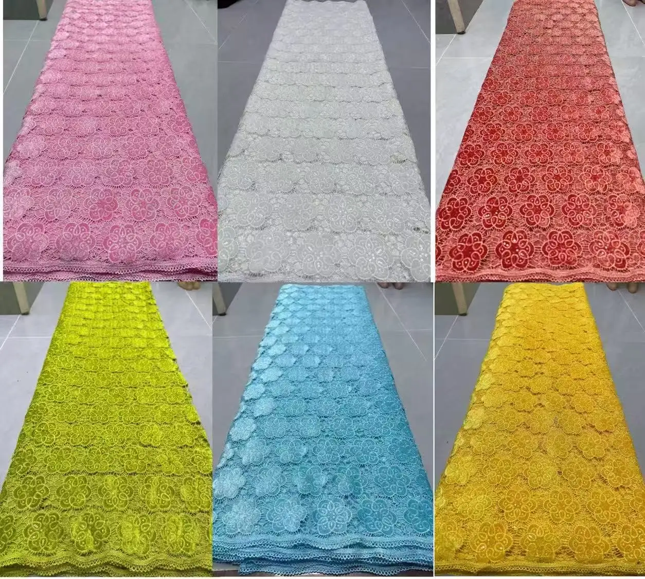 Color: Beige, Width: 120cm, Length: 5 yards - Laser Cut Guipure Velvet Lace Fabric 2025 African Nigerian French Velvet Lace Fabric Luxury Korea Lace For Wedding Party Sewing
