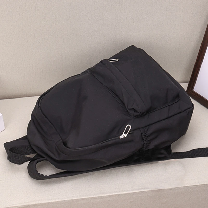 Color: Beige - Women Schoolbag Waterproof Large Capacity School Backpack Smooth Zipper Solid Color Teens Girl Casual Daypack Bag Student Supply