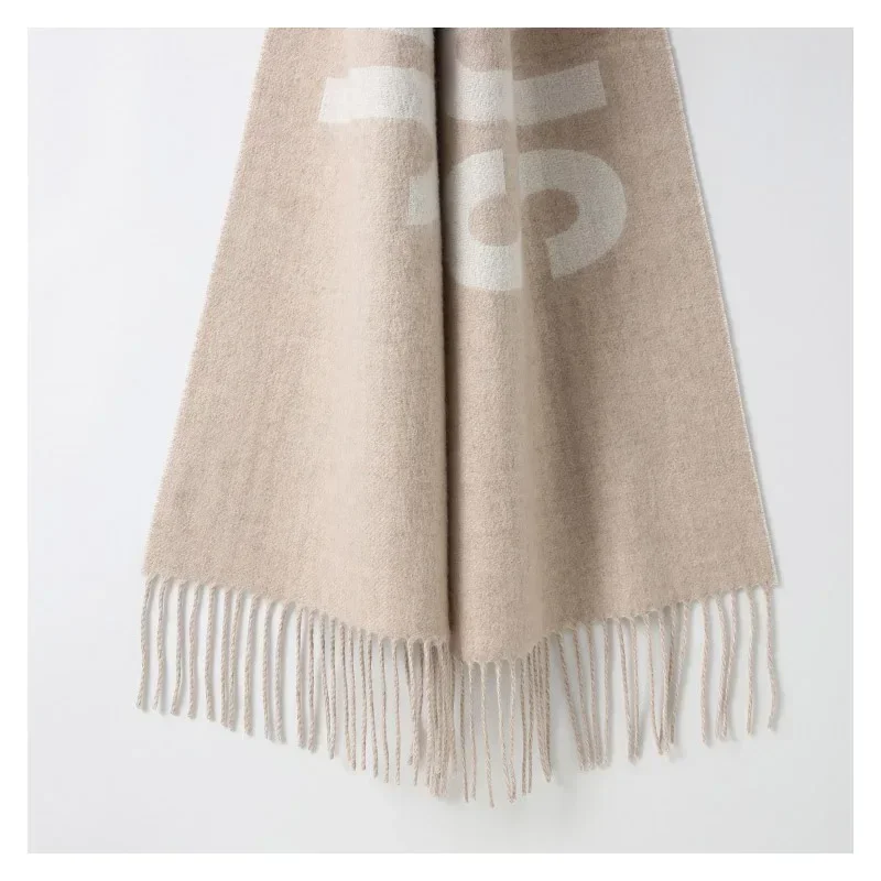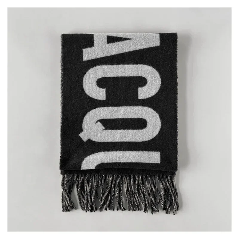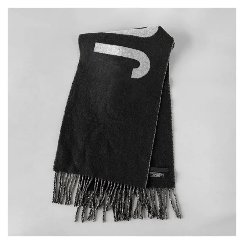 Color: black - 2025 100% wool scarf for women luxury brand winter thick warm neck scarves monogram high quality ladies fashion cashmere shawl