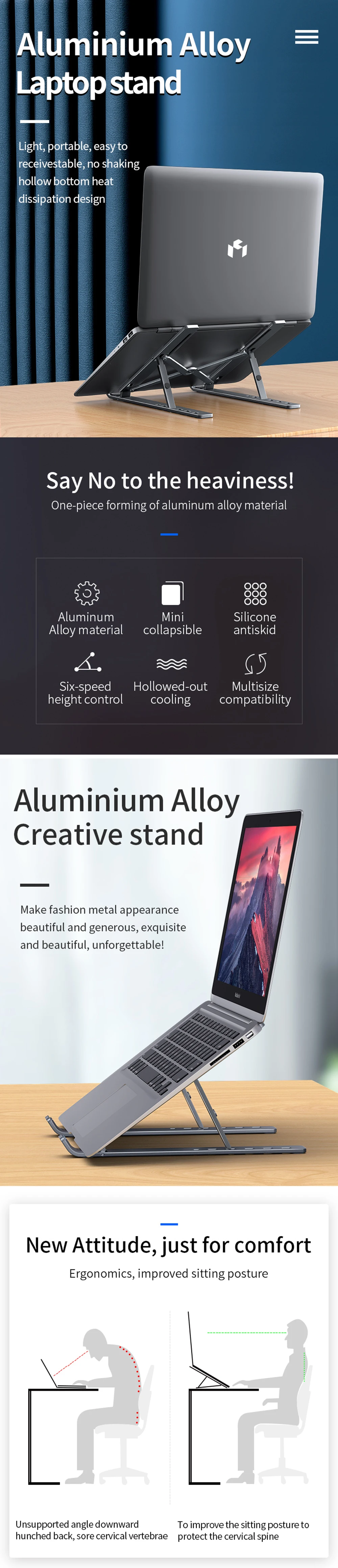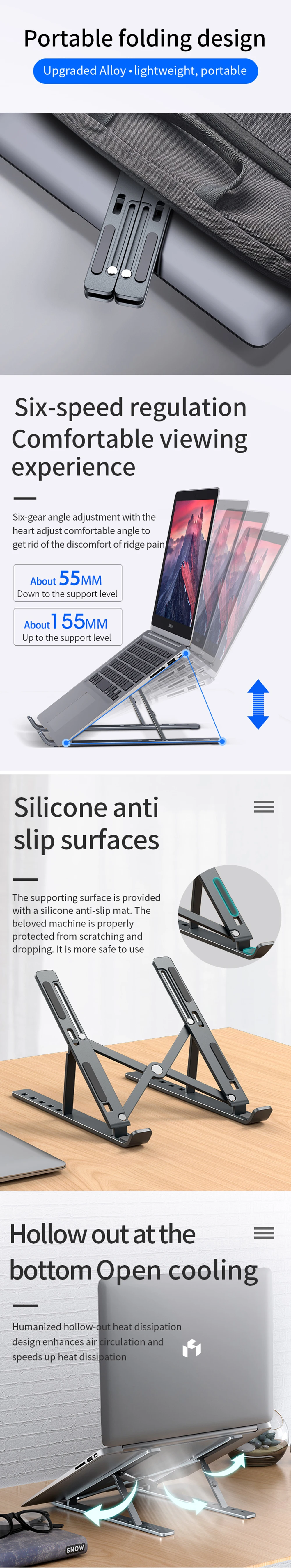 Color: Black - Aluminum Alloy Laptop Holder Stand Adjustable Foldable Portable for Notebook Computer Bracket Lifting Cooling Holder Non-slip