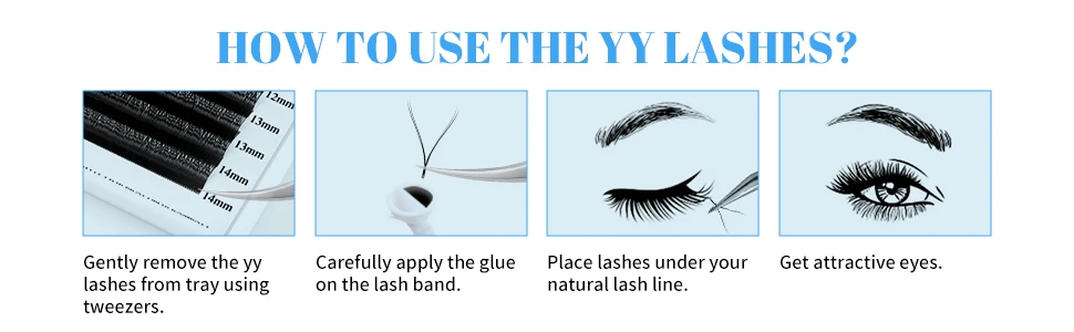 Gemerry Y Shape Volume CÃlios Extensões Preto Macio Individual Pestanas Falsas Design YY Ferramentas para CÃlios 8-14mm MIX CÃlios