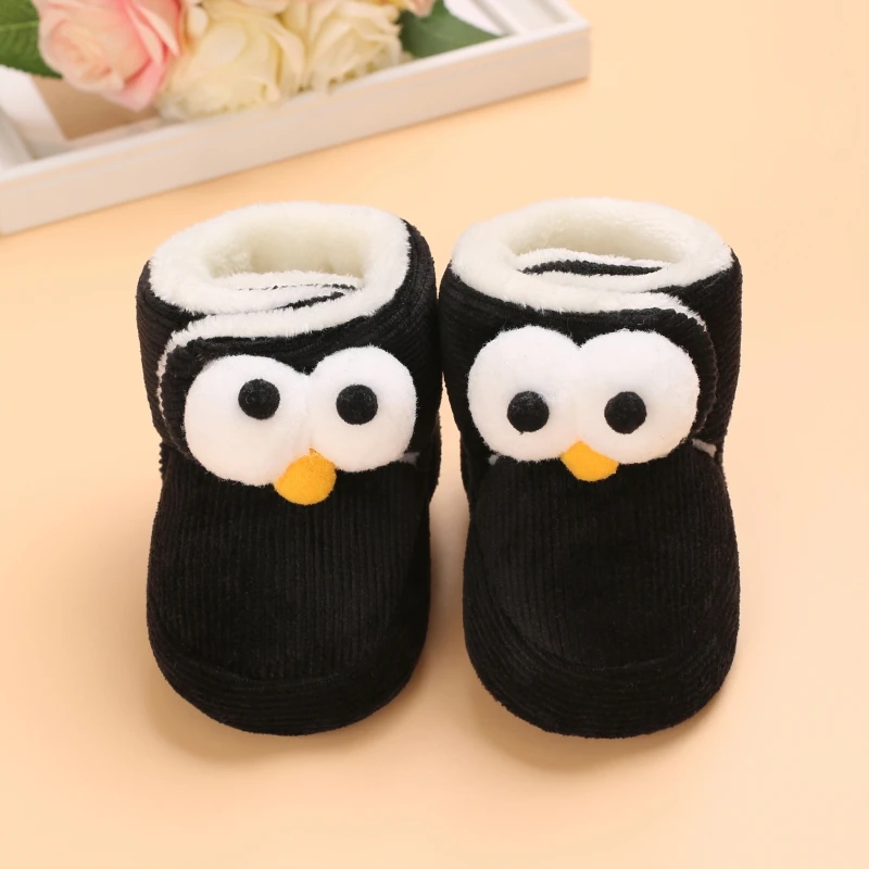 Color: black, Baby Age: 13-18 Months - Winter New Cute Cartoon Baby Booties Boy Girl Boots Cotton Soft-Sole Non-Slip Warm Toddler First Walkers Infant Crib Shoes