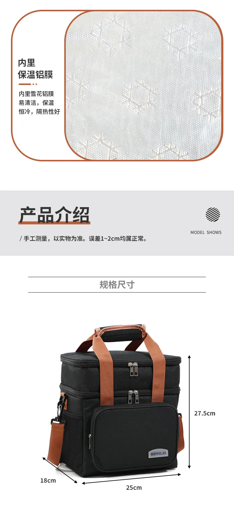 Style: Double layer shoulder cooler bag