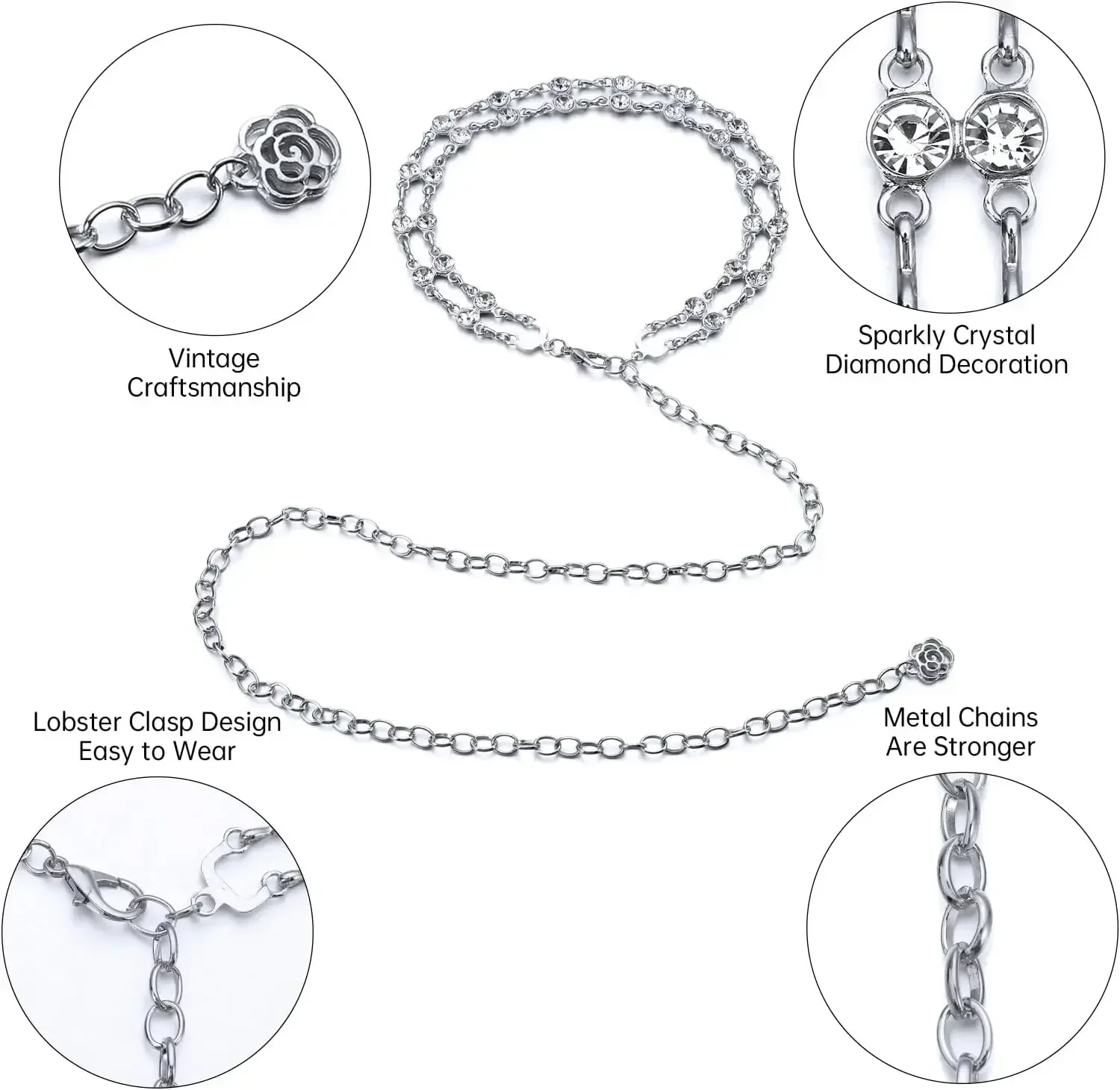 【Western Belts for Women】: This western belt is made of alloy metal and waist chain with a secure lobster claw clasp, easy to put on and take off. It won't fade or rust over time and is lightweight for all-day wear【Adjustable to Wear】: Length 120cm / 47.2inch, Suitable Waist Range 70-100cm / 27.5-39.3inch. The extension chain with alloy lobster claw buckle can easily adjust the length to match your waist size