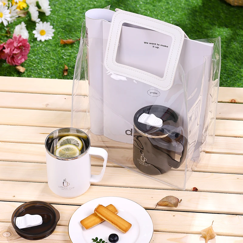 Color: black, Capacity: 401-500ml - 500ml/17oz 304 Stainless Steel Water Bottle Double Layers Coffee Mug Milk Cup With Plastic Lid And Handle