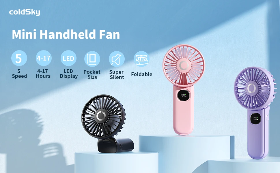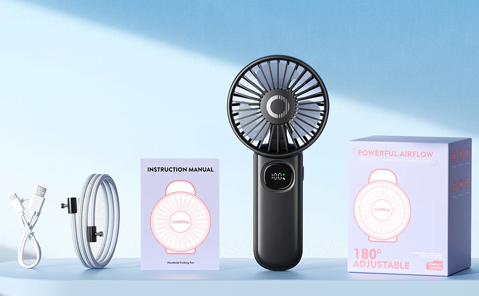 coldSky handheld fan features an LED smart display screen, which accurately shows the remaining battery power and wind speed level. This makes it easier for you to adjust the fan to the desired speed level and know when to charge the fan, avoiding the embarrassing moment of running out of power outdoors