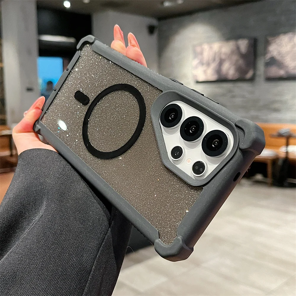 For Magsafe Clear Armor Bumper Glitter Phone Case For Samsung S25 Ultra S24 Plus Wireless Charging Shockproof Protective Cover
