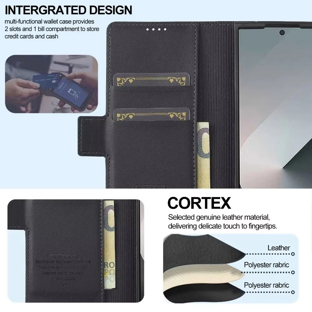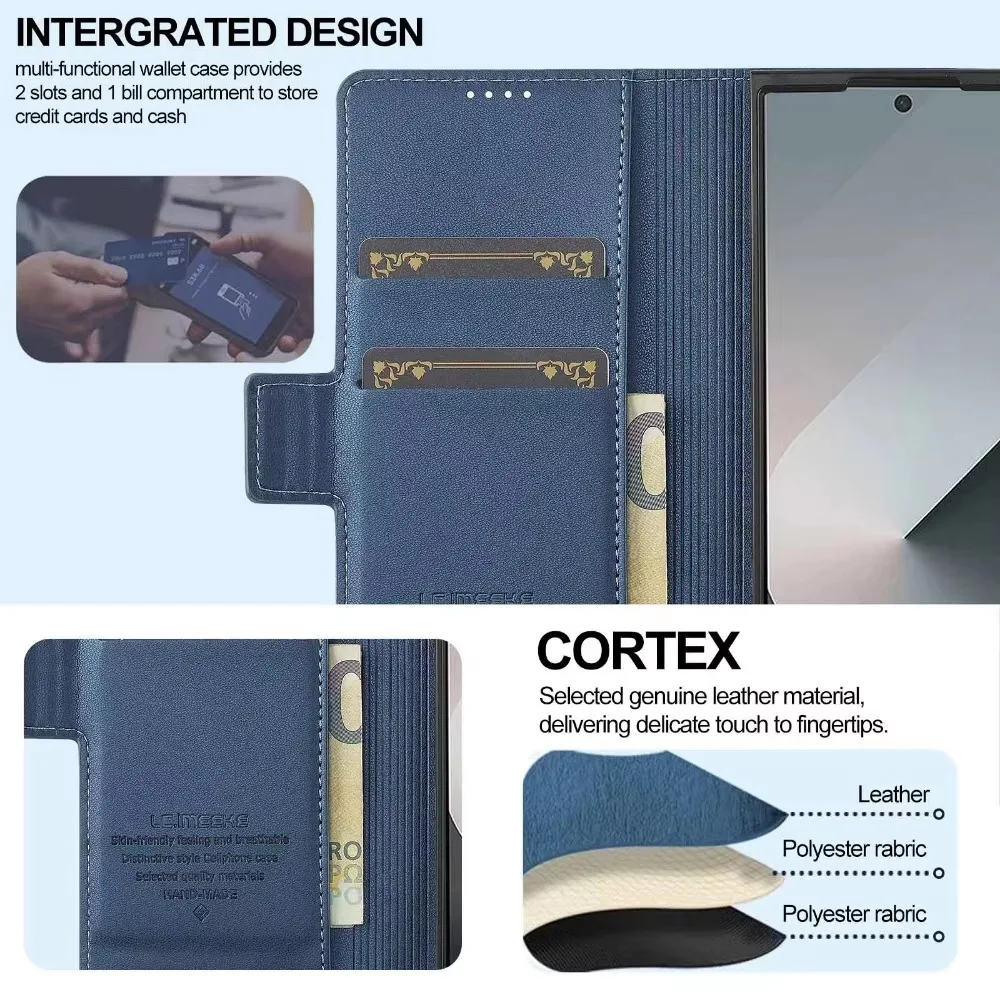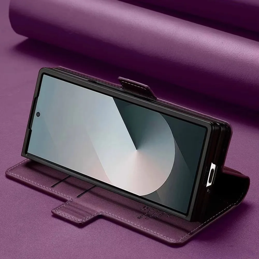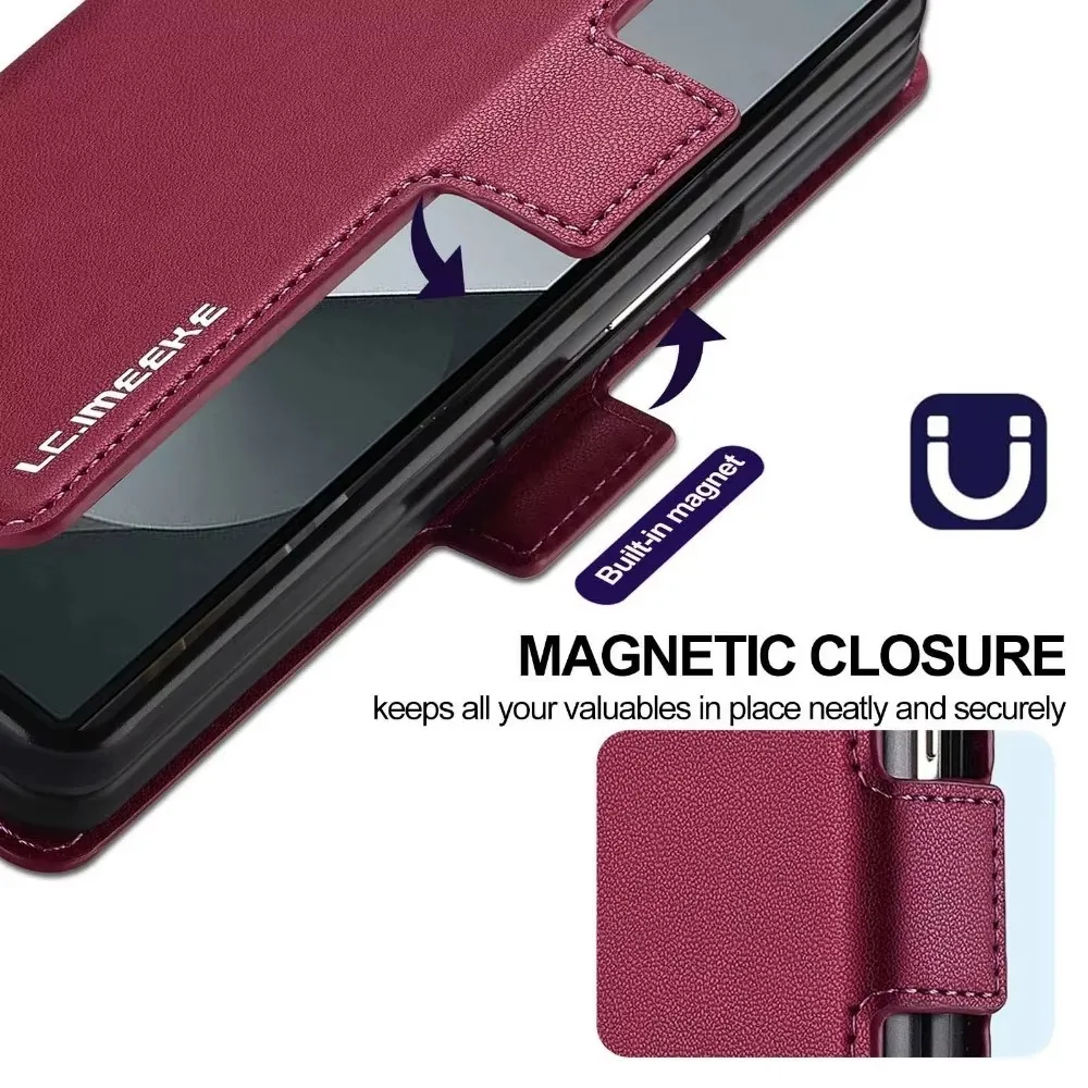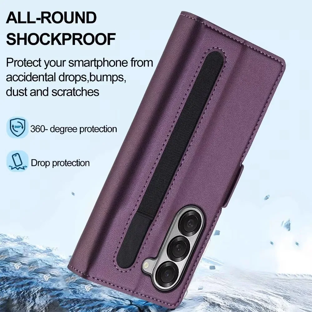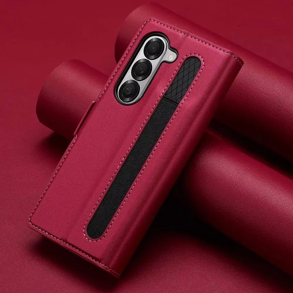 Premium Leather Phone Case for Samsung Galaxy Z Fold 7 6 5 4 3 Fold6 Fold5 Fold4 5G with Pen Holder Wallet Flip Phone Cover