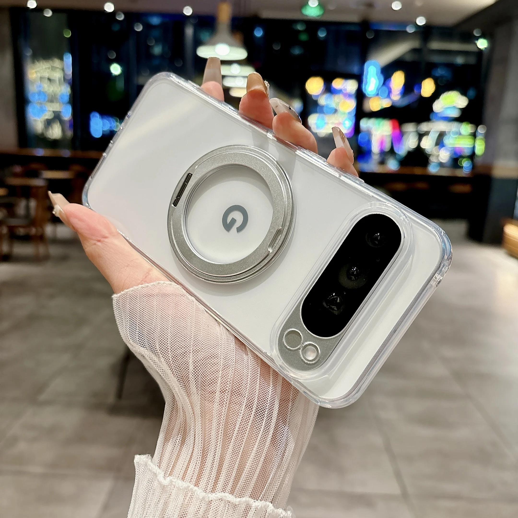 for Magsafe Matte Rotating Bracket Case for Google Pixel 10 9 Pro XL 8 7 6 9A 8A 7A 6A Holder Stand Transparent Shockproof Cover