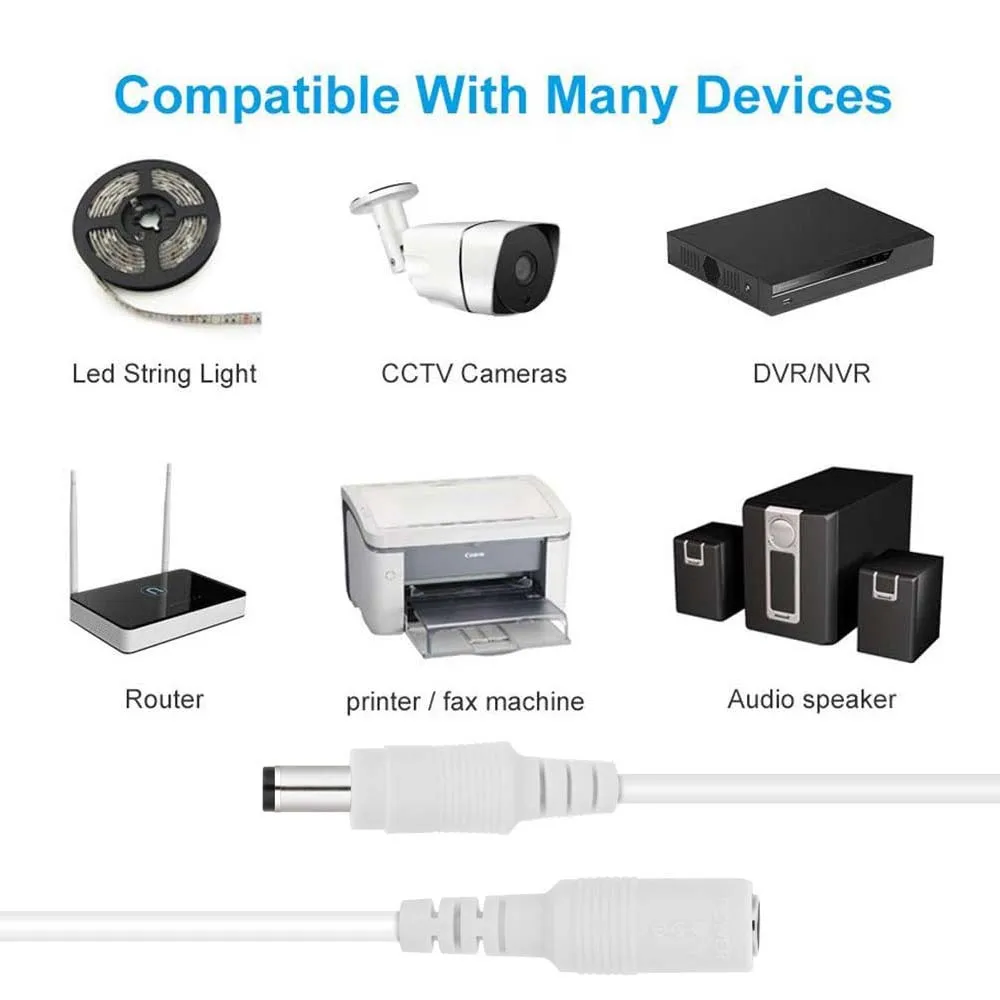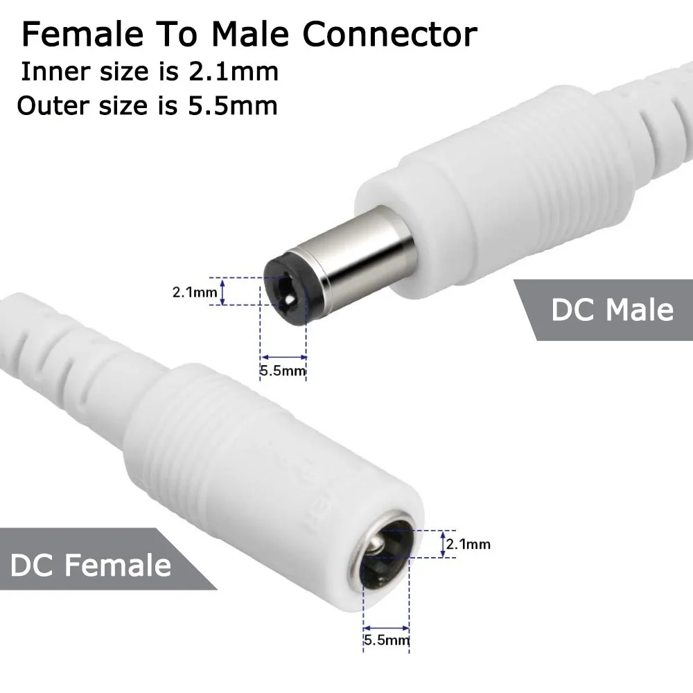 DC 12V Extension Power Cable 2.1mm*5.5mm Male To Female Connect Wire White Black 0.5m 1m 2m 3m 5m 10m For LED Light CCTV Camera