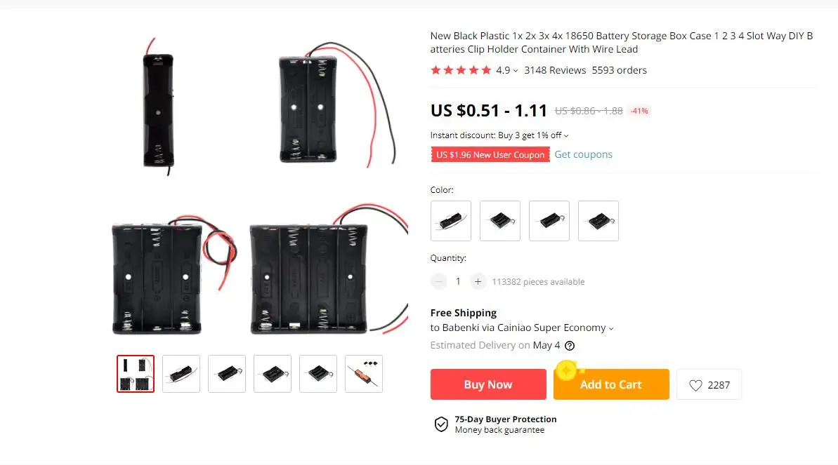 Can hold 1/2/3/4/6/8 pieces AA battery pack from single cells.